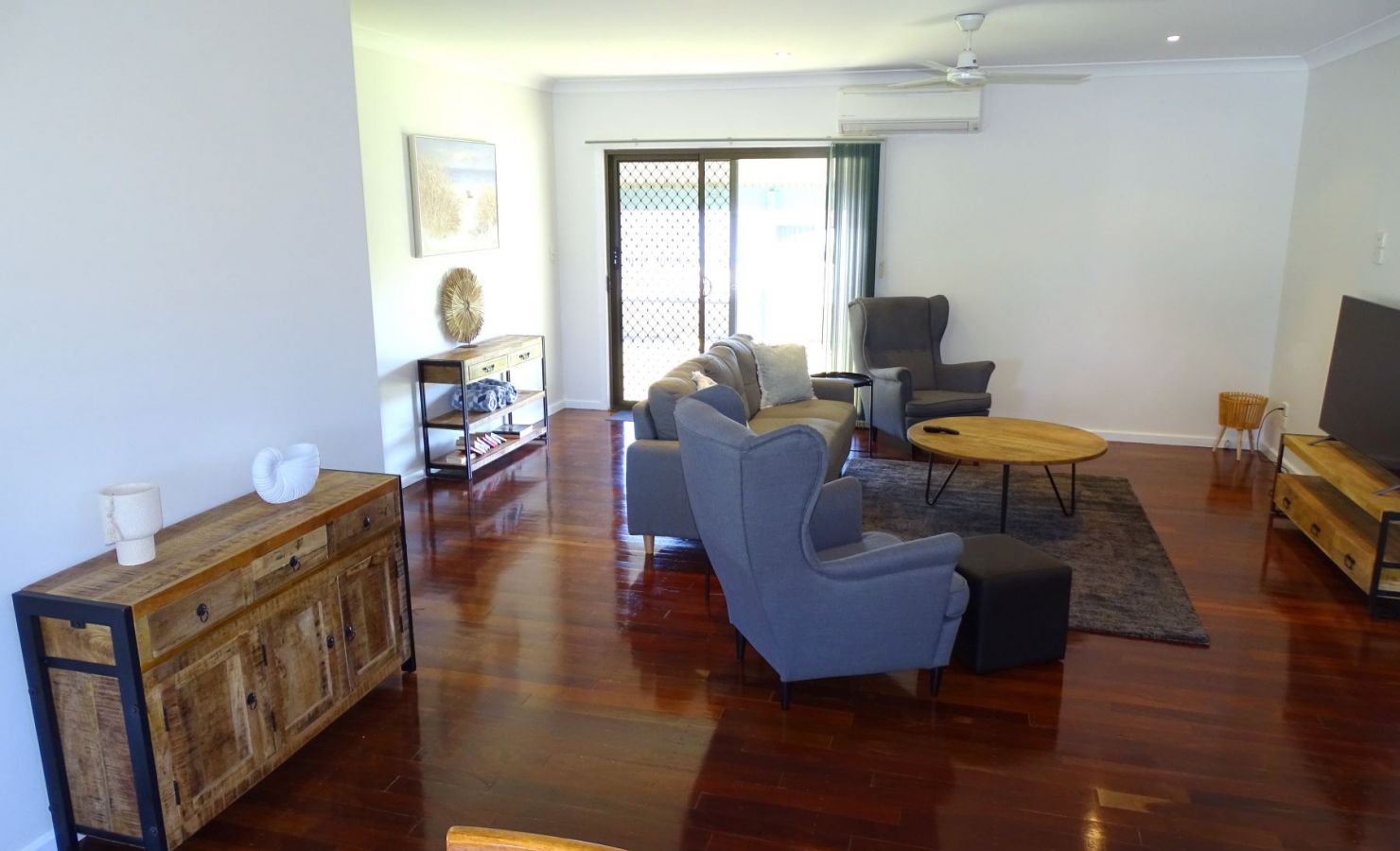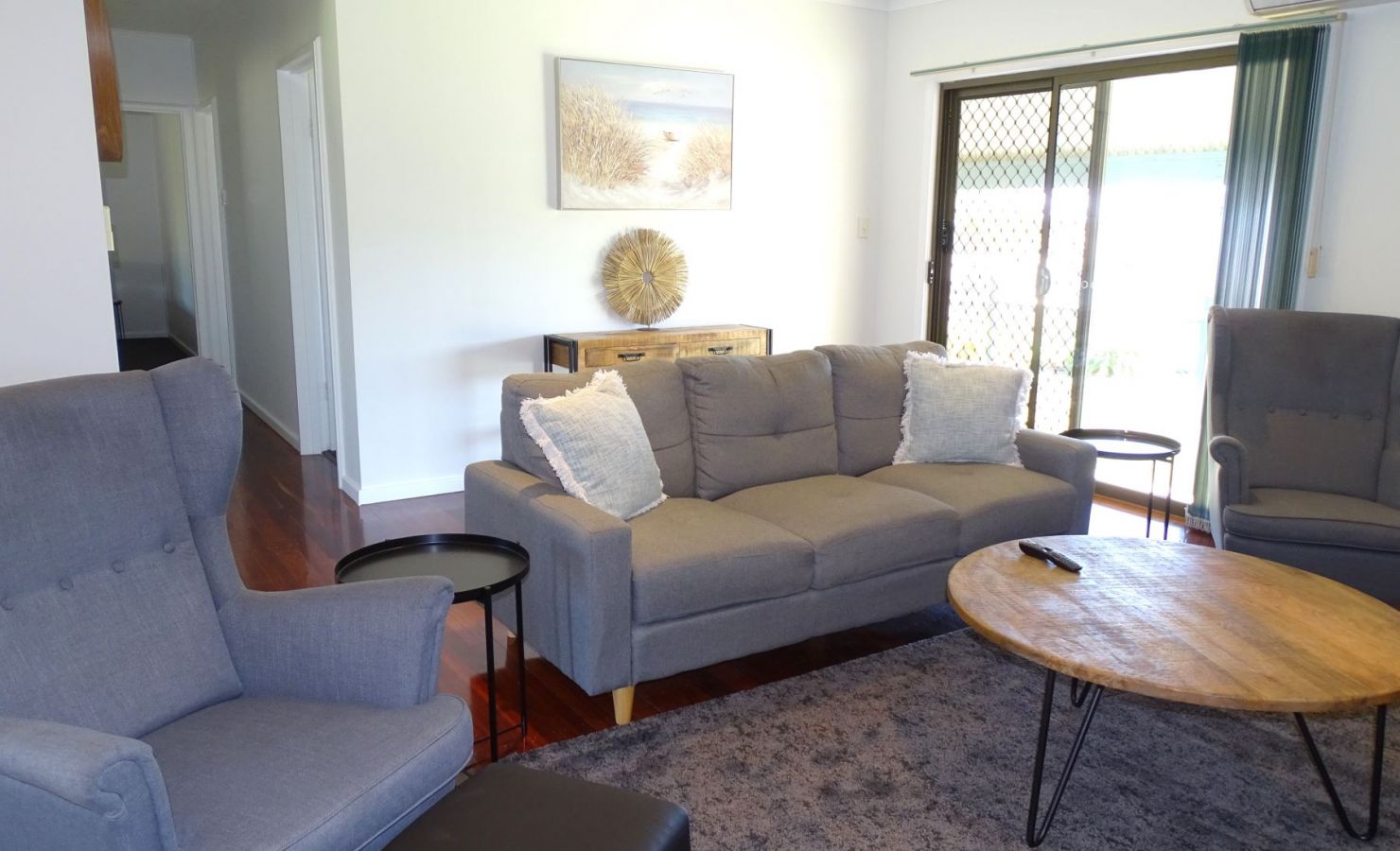 Ardy House has a spacious open plan living area comprising the lounge room, kitchen & dining spaces with split system air-conditioning & ceiling fans.