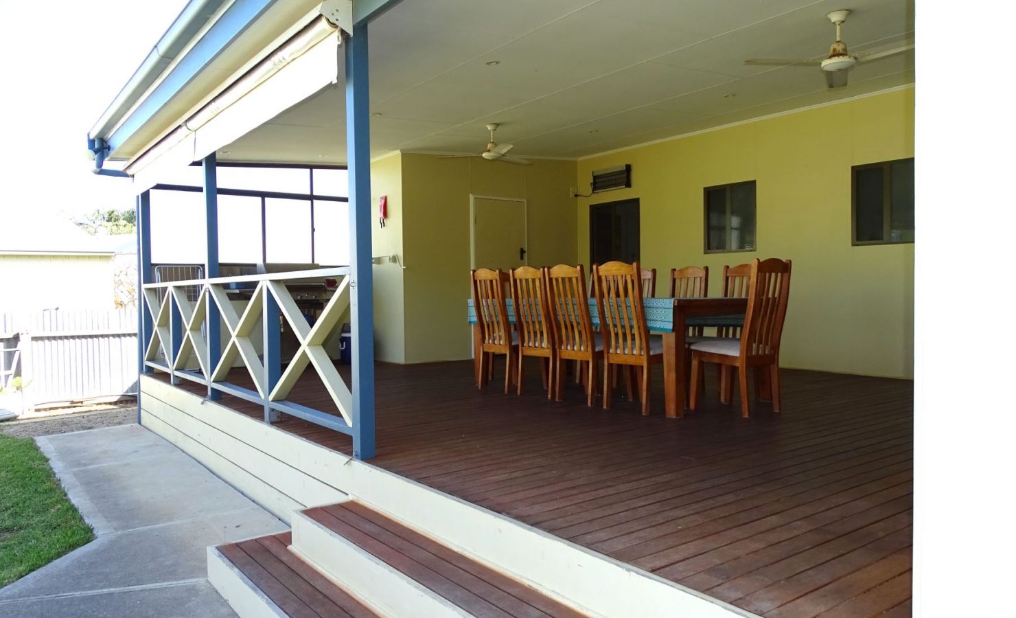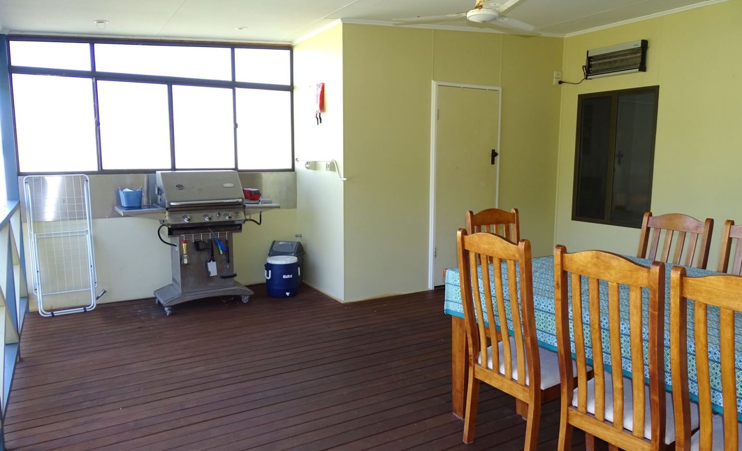 The rear deck has direct access through sliding doors from the kitchen and is undercover and semi-enclosed with café blinds. There are ceiling fans, with outdoor dining & seating, a large television & a hooded gas barbecue.