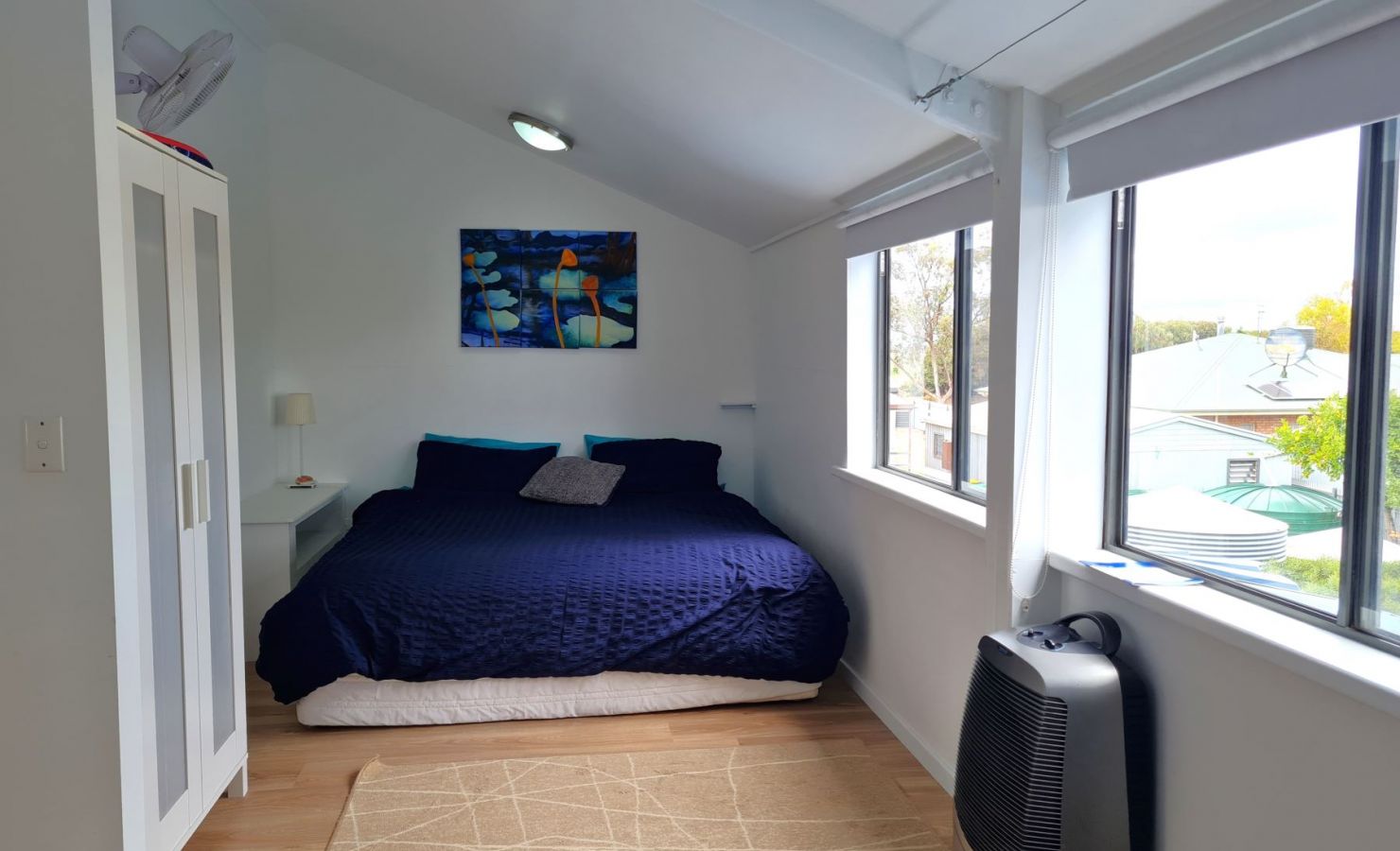 Brooksea at Balgowan has a wood combustion heater in the lounge room, with an air-conditioning unit in the kitchen and evaporative cooling unit upstairs. The lounge room has a ceiling fan, and there is a wall-mounted fan in the upstairs king bedroom.