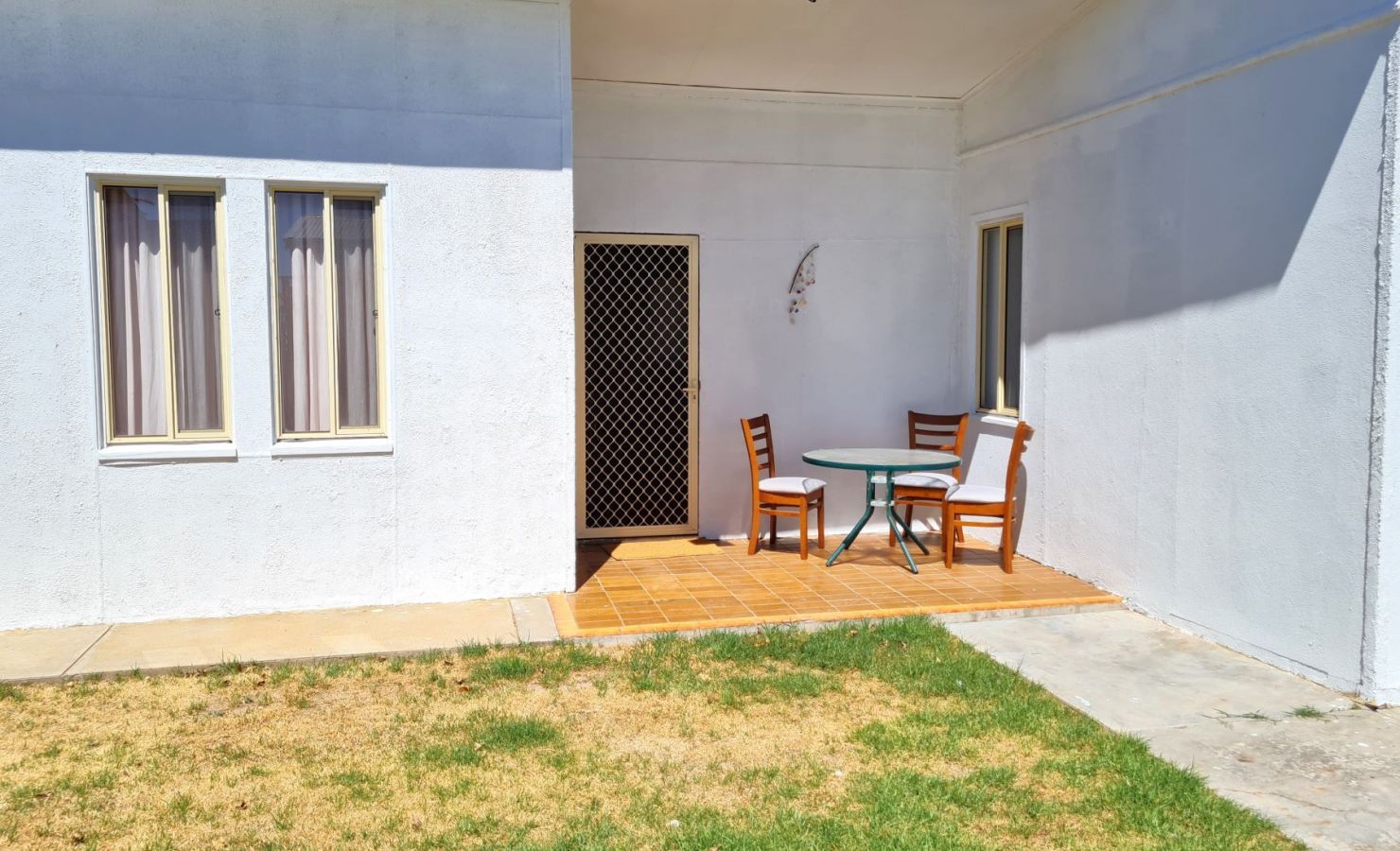 Outside, guests can enjoy the outdoor seating area and the shaded pergola at the rear of the accommodation, with a flat plate gas barbecue.