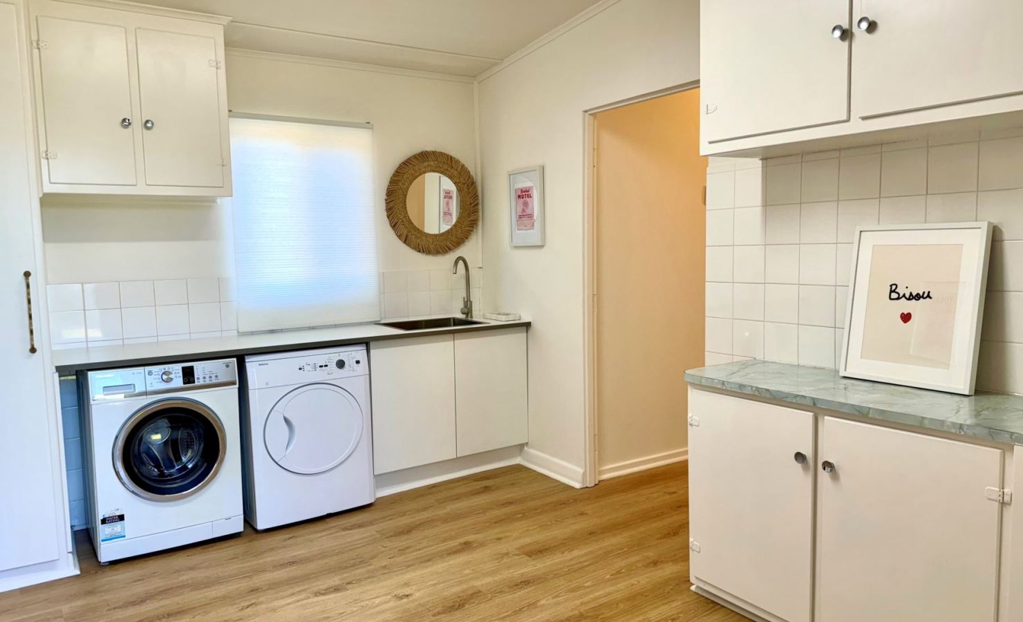 There is a fully supplied laundry for any length of stay with a front load washing machine and clothes dryer, and a pull-out clothesline in the rear yard.
