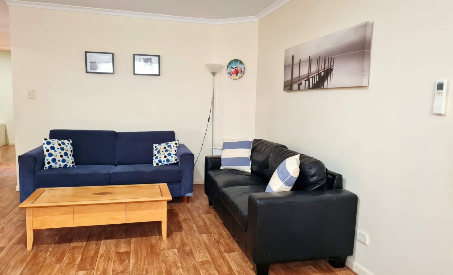 The accommodation has year-round comfort with reverse cycle split-system air-conditioning in the upstairs lounge and downstairs family room. There are ceiling fans in the upstairs living area, master queen bedroom and the downstairs queen bedroom. Wall-mounted fans are located in the downstairs bunk and trio bunk bedrooms for guest comfort.