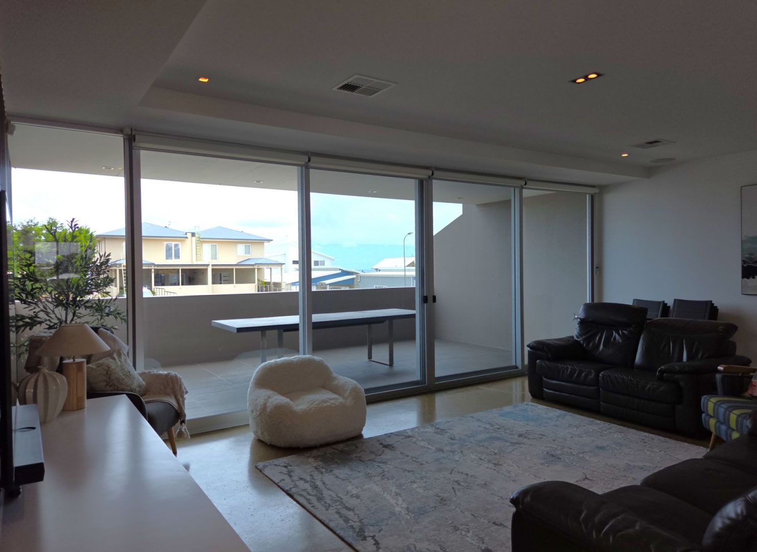- Spacious open plan living area on middle level comprising kitchen, dining area and lounge, direct access to balcony with sea views and outdoor dining