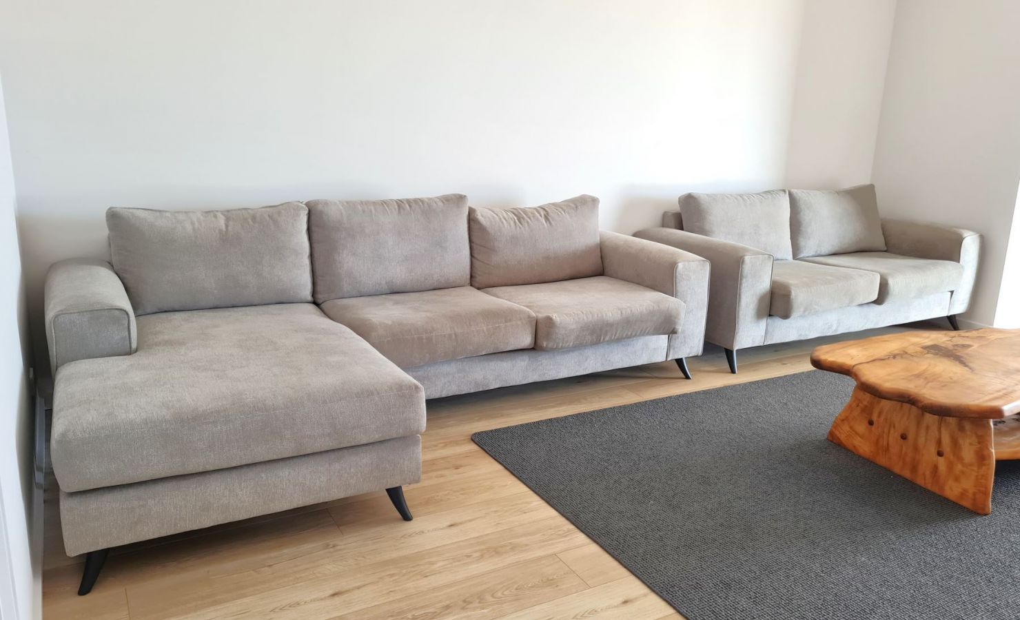 - Fully equipped kitchen with electric oven and cooktop, microwave, dishwasher, large fridge with freezer on bottom