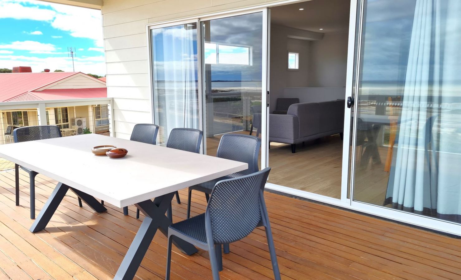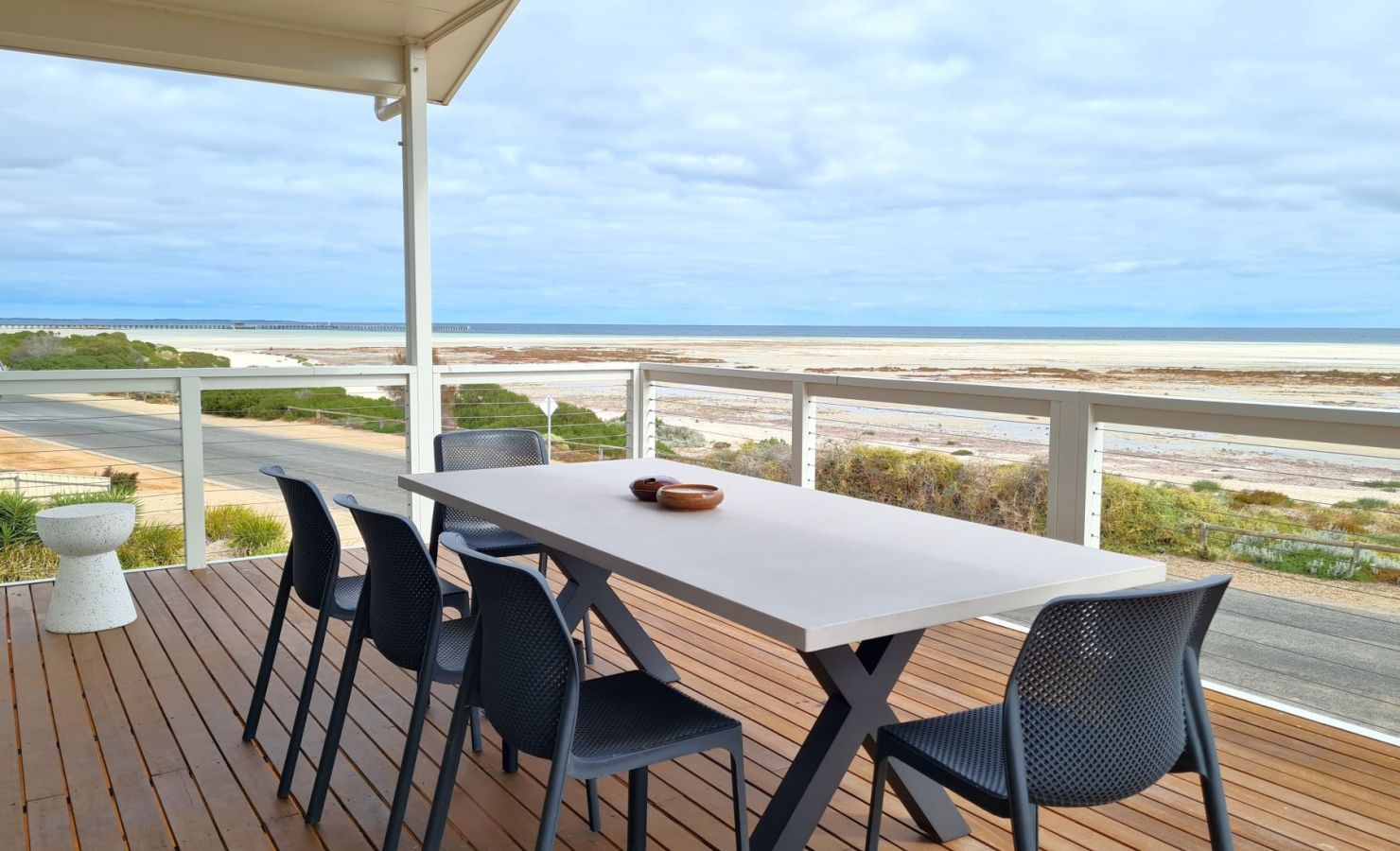 Beachfront Beauty is a 2-storey beachfront holiday house at Moonta Bay, offering stunning 180-degree coastal views from Moonta Bay jetty to the south and to Bird Island Conservation Park in the north.
