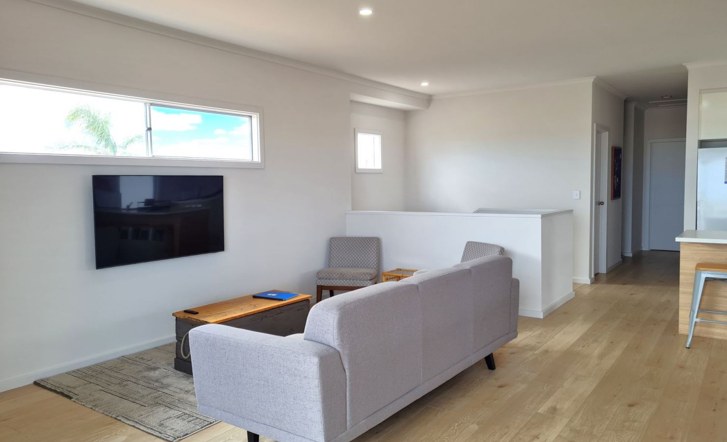 Beachfront Beauty has a large wall-mounted smart television in the upstairs lounge room, with board games stored in the coffee table for guests to enjoy during their stay.