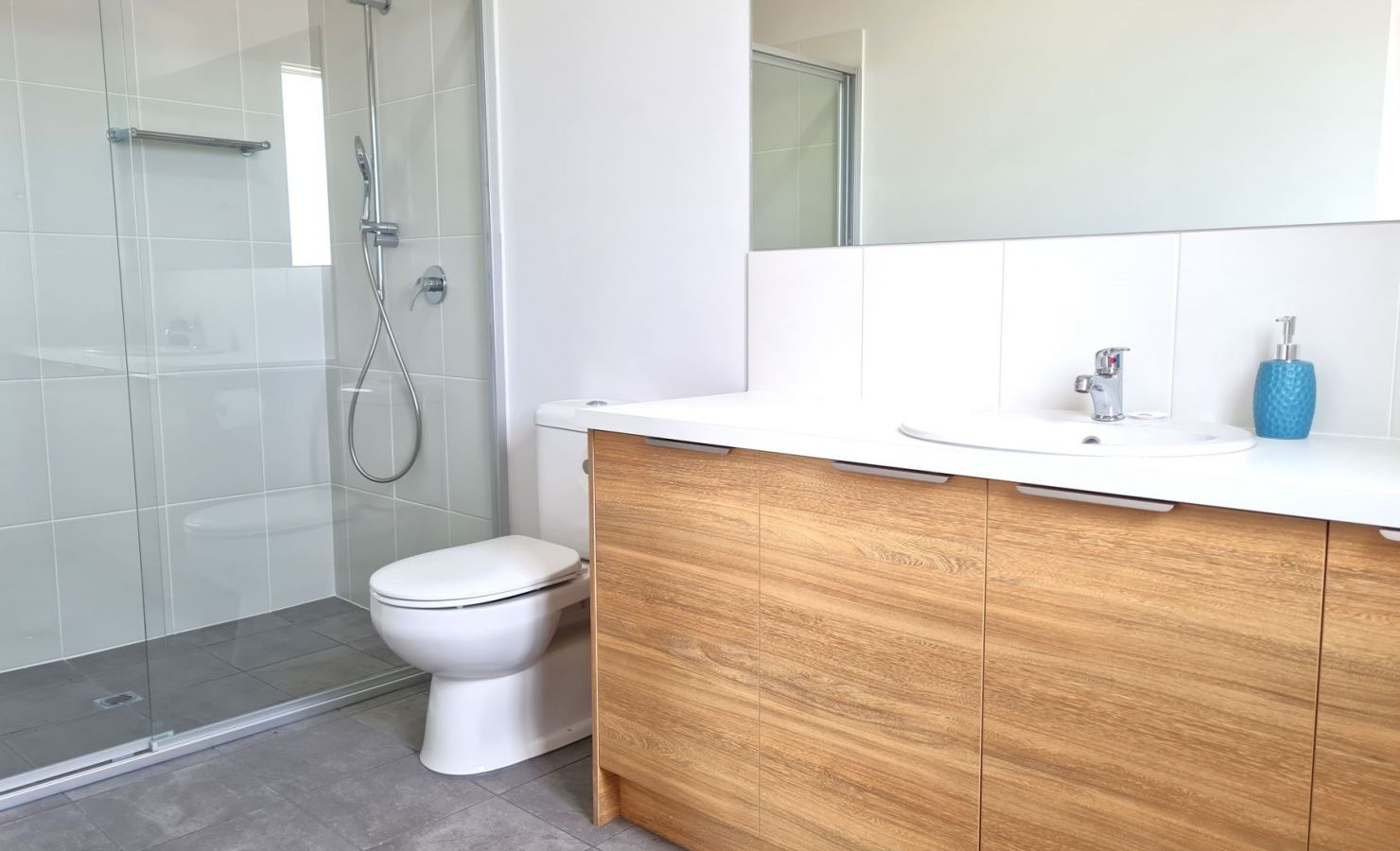 - Ensuite bathroom adjoining upstairs master bedroom, with walk-in shower, vanity and toilet
