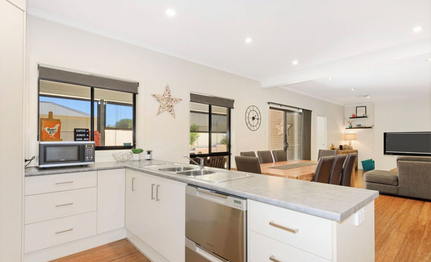 Calm Waters is a four bedroom property that sleeps up to eight, located halfway between Port Hughes and Moonta Bay, and is just a short walk to the beach.