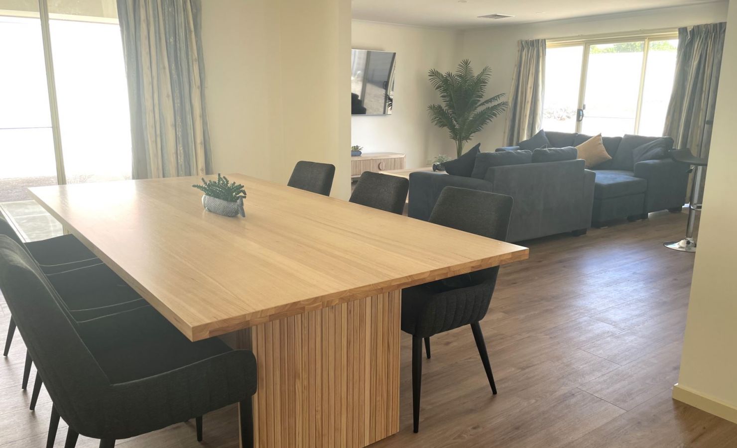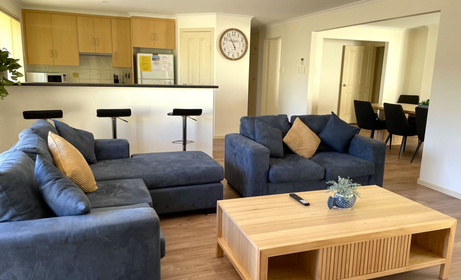 - Spacious living area comprising lounge room & kitchen, with adjacent dining room