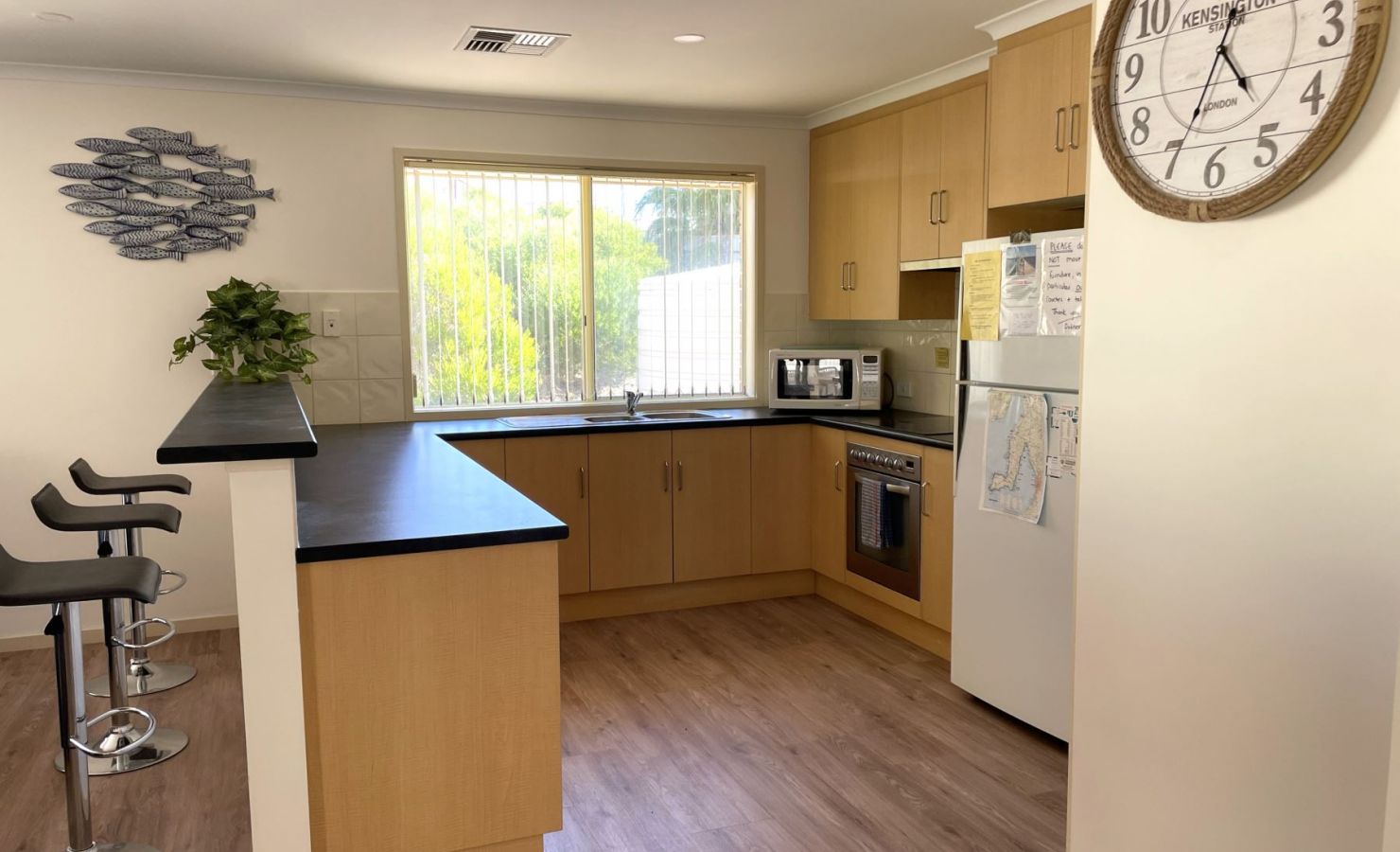 - Well equipped kitchen with electric stove, microwave, Nespresso coffee machine (guests need to bring compatible pods to use or purchase locally), stick mixer & medium sized fridge/freezer
