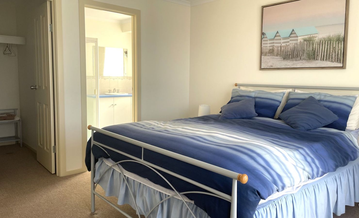 There are 2 bathrooms at the holiday house with the master queen bedroom having an ensuite bathroom with walk-in shower, vanity & toilet. The main bathroom has 3-way access to the walk-in shower, bath, vanity & separate toilet.