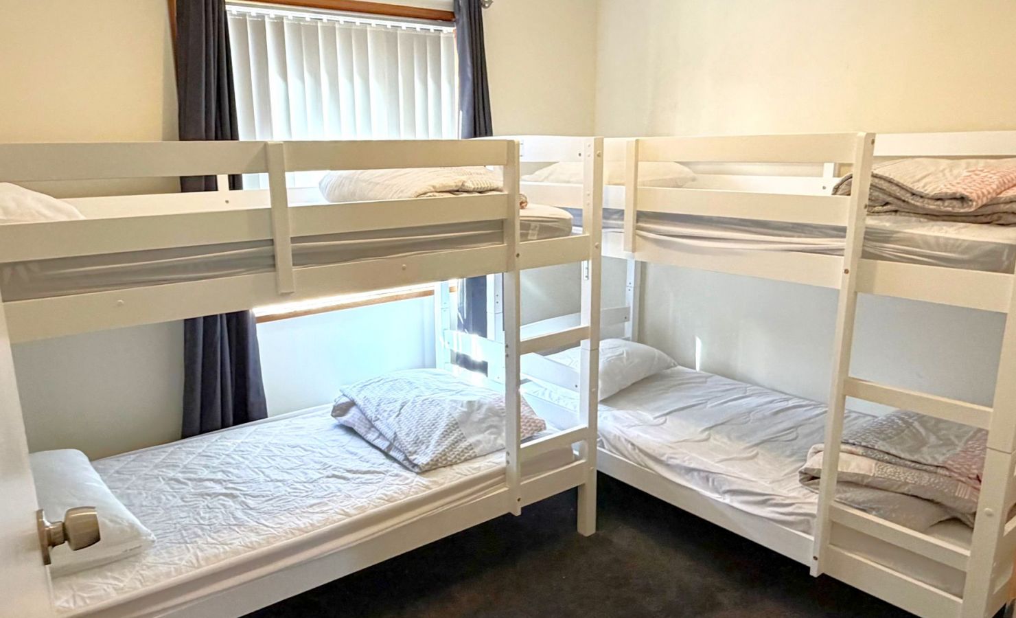 - 3 bedrooms – queen, queen, 2 bunks (4 singles)