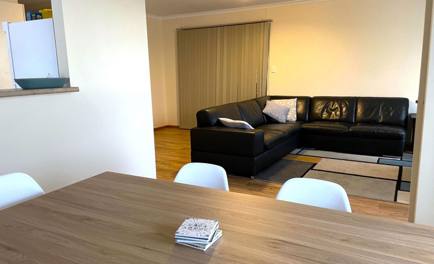 The lounge room has spacious corner lounge seating with a large television (with USB & HDMI ports), plus board games & books for guests to enjoy during their Moonta Bay holiday, as well as complimentary WiFi for guests.