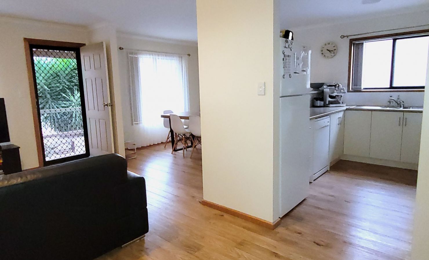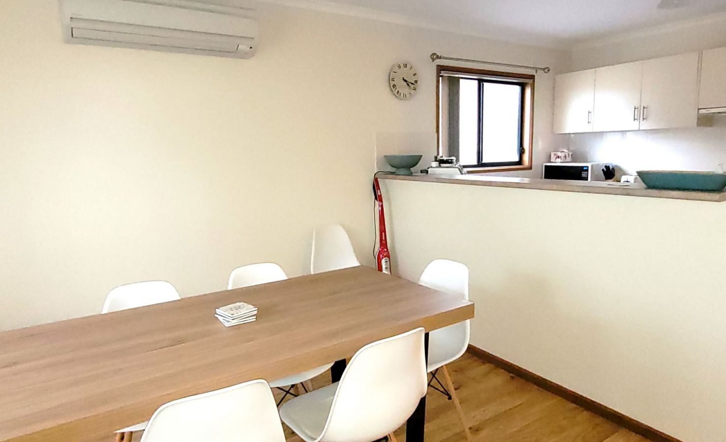 Serenity on Spry has an open plan living area comprising the lounge room, dining & kitchen, with split-system air-conditioning.