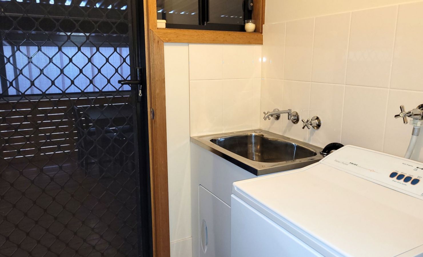 Laundry facilities at the holiday house include a top load washing machine, undercover clothesline & clotheshorse.
