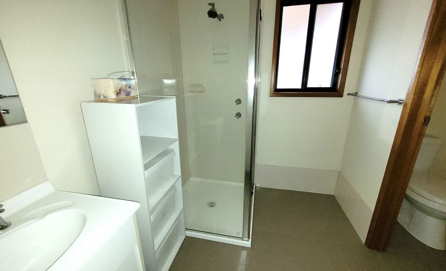 There is one bathroom at the holiday house, with a walk-in shower, vanity & toilet.
