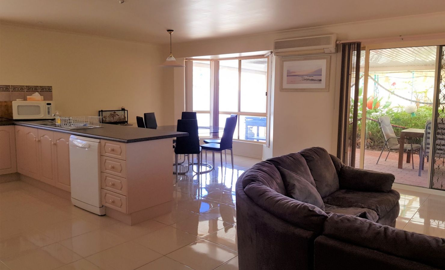 The open plan lounge, kitchen, dining area at Sun n’ Sand is large and spacious, with reverse cycle split system air-conditioning in the lounge. There is a television in the main lounge plus an additional lounge with a television & DVD player.