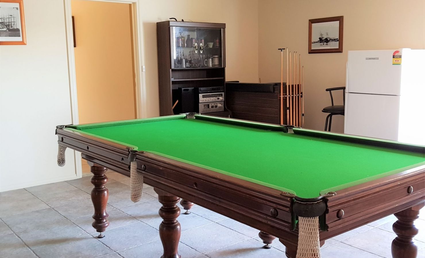 A great feature at Sun n’ Sand is the pool table & television in the garage rumpus room adjoining the house, which has reverse cycle air-conditioning.