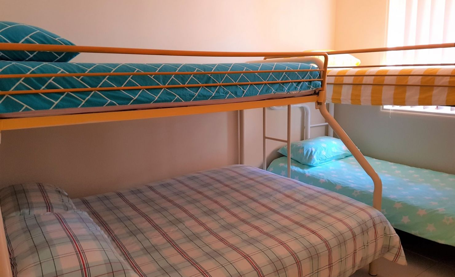 - 3 bedrooms - Queen, Queen, Trio bunk (double on the bottom, single on the top) & bunk