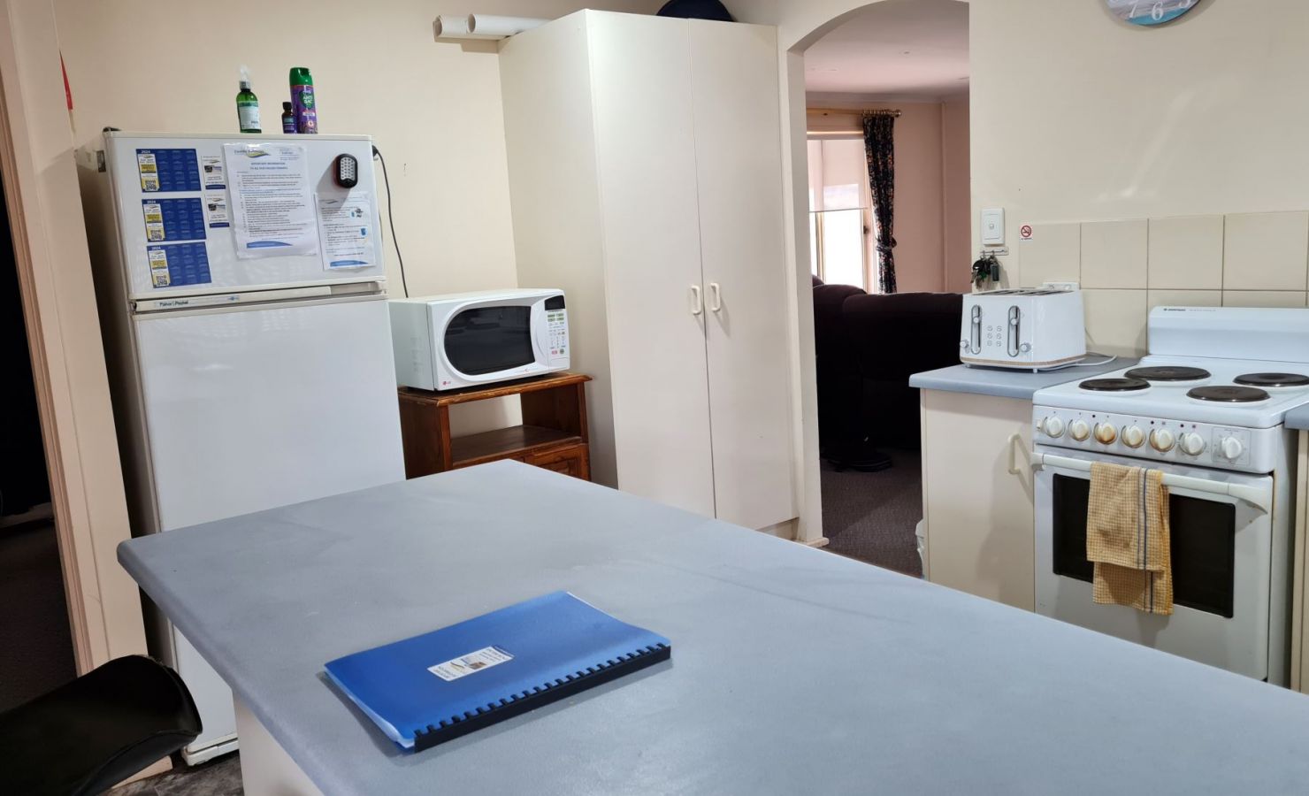 The Vibe has a well-equipped kitchen with electric stove, microwave, kettle, toaster & medium fridge/freezer. There is breakfast bar seating with bar stools, and a dining area with access to the outdoor entertaining space.