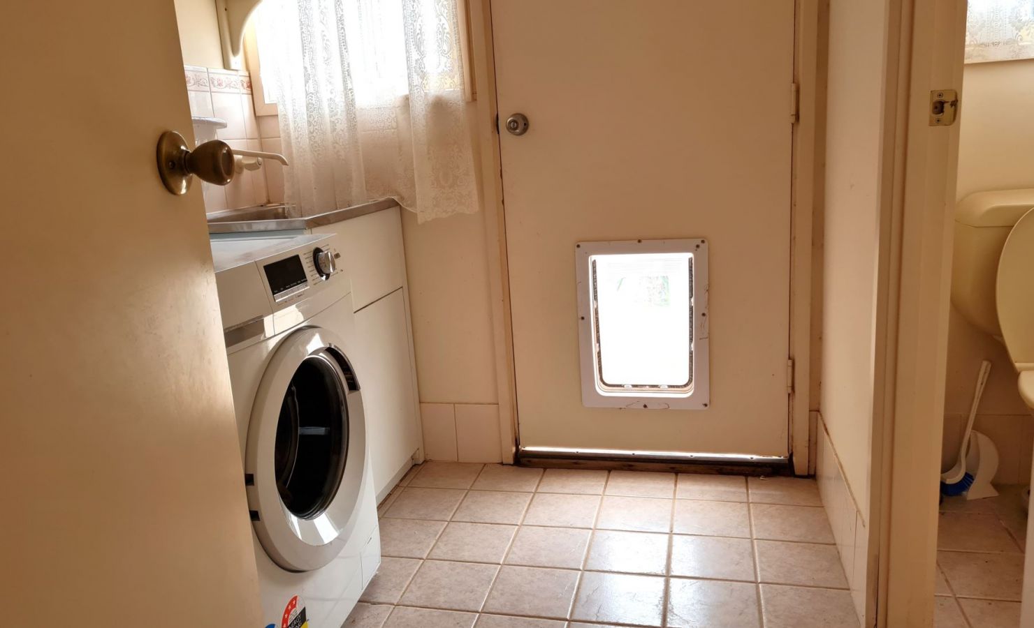 The laundry facilities at the holiday house include a front load washing machine, and pull-up clothesline at the rear of the house.
