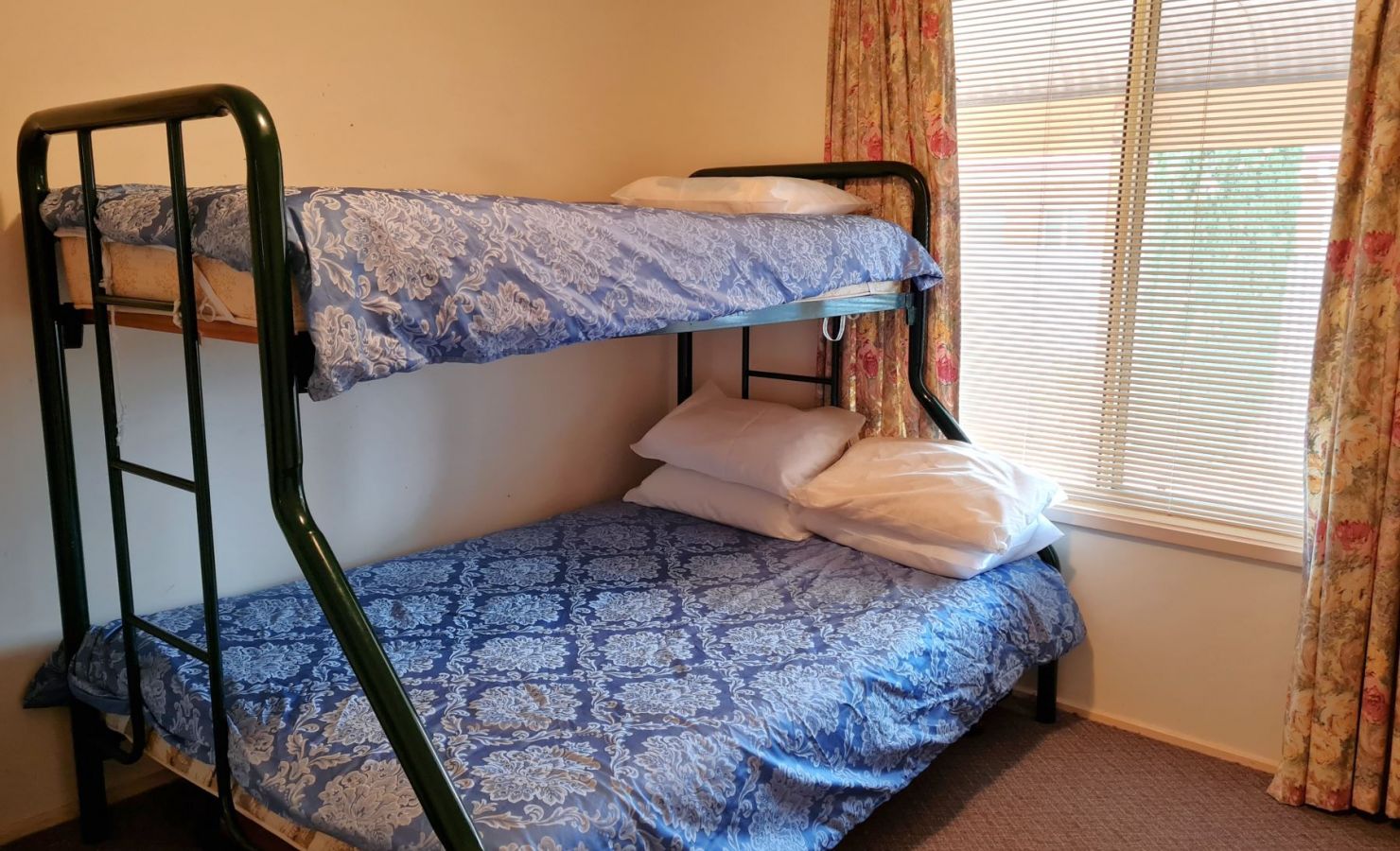 - 3 bedrooms – queen, queen, trio bunk (double on the bottom, single on the top)