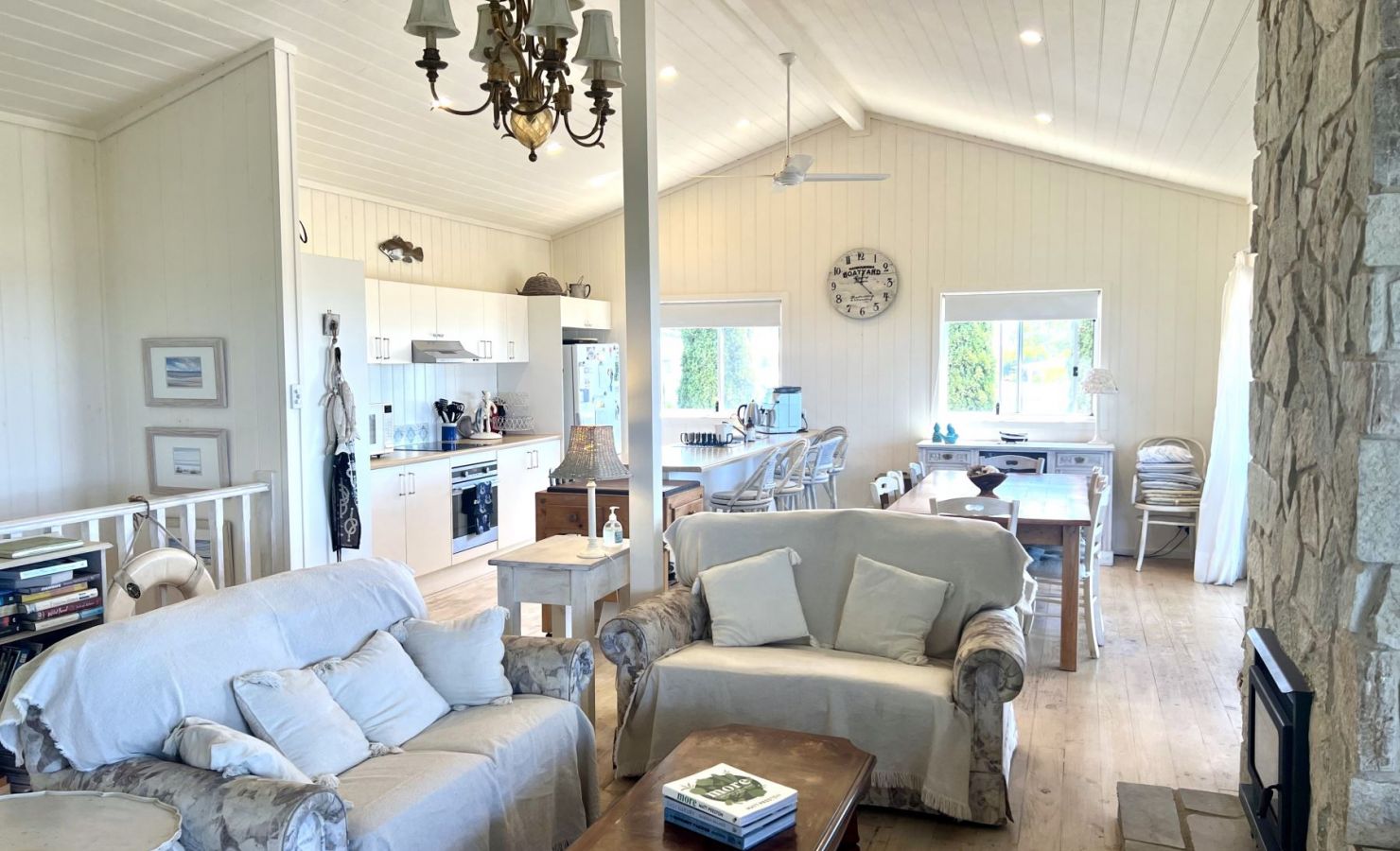 Pine Lodge has 4 bedrooms, sleeping up to 8 people. Upstairs is a queen bedroom; and downstairs are 3 bedrooms – queen, double, 2 single. Quilts and pillows are provided, but guests will need to bring their linen (sheets, pillowcases, towels, bathmats & tea-towels) with them for their stay.