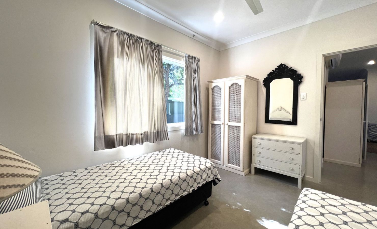 - 4 bedrooms – queen [upstairs]; queen, double, 2 singles [downstairs]