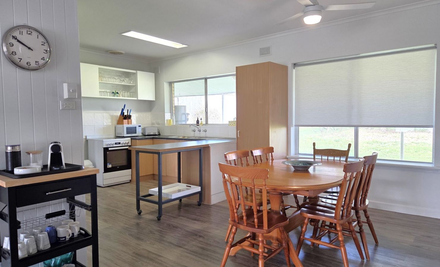 Year-round comfort is provided with reverse cycle split-system air-conditioning in the lounge room, and a wood combustion heater for the cooler months, with guests to bring their own wood. Ceiling fans are installed in the queen and trio bunk bedrooms, and in the dining area.