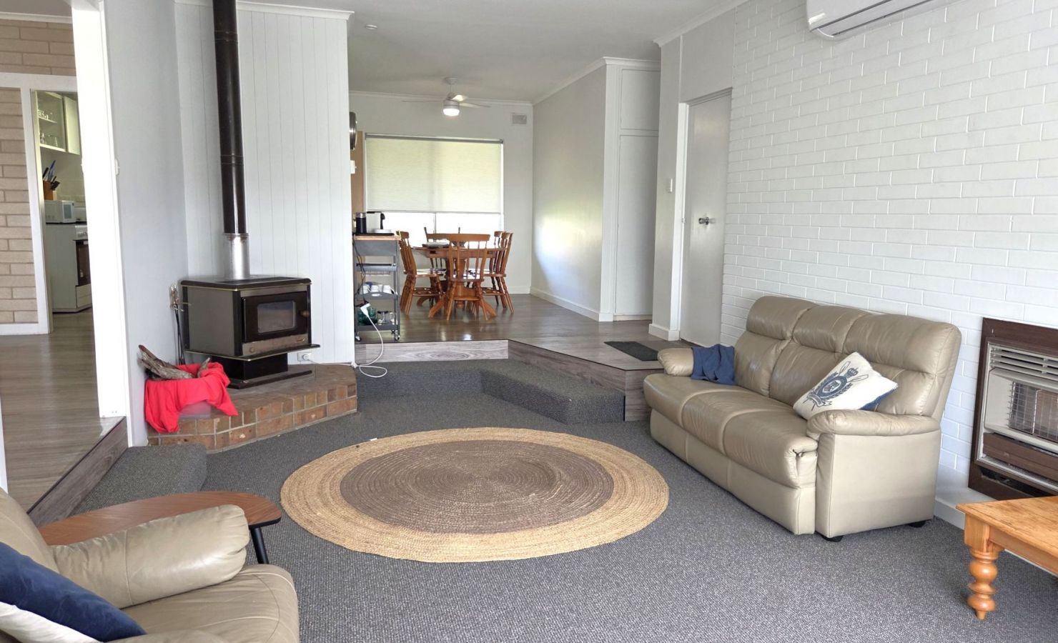 - Wood combustion heater in lounge room (guests need to bring wood to use)