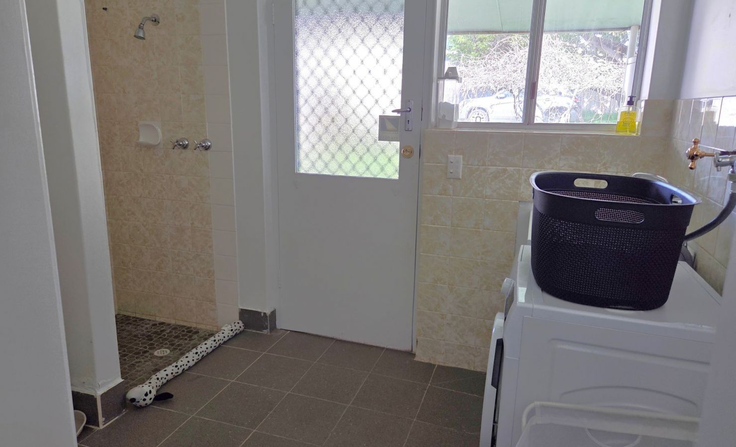 The holiday house has a front load washing machine, iron, ironing board and rear clothesline, along with a handy shower for rinsing off after a day at the beach directly across the road.