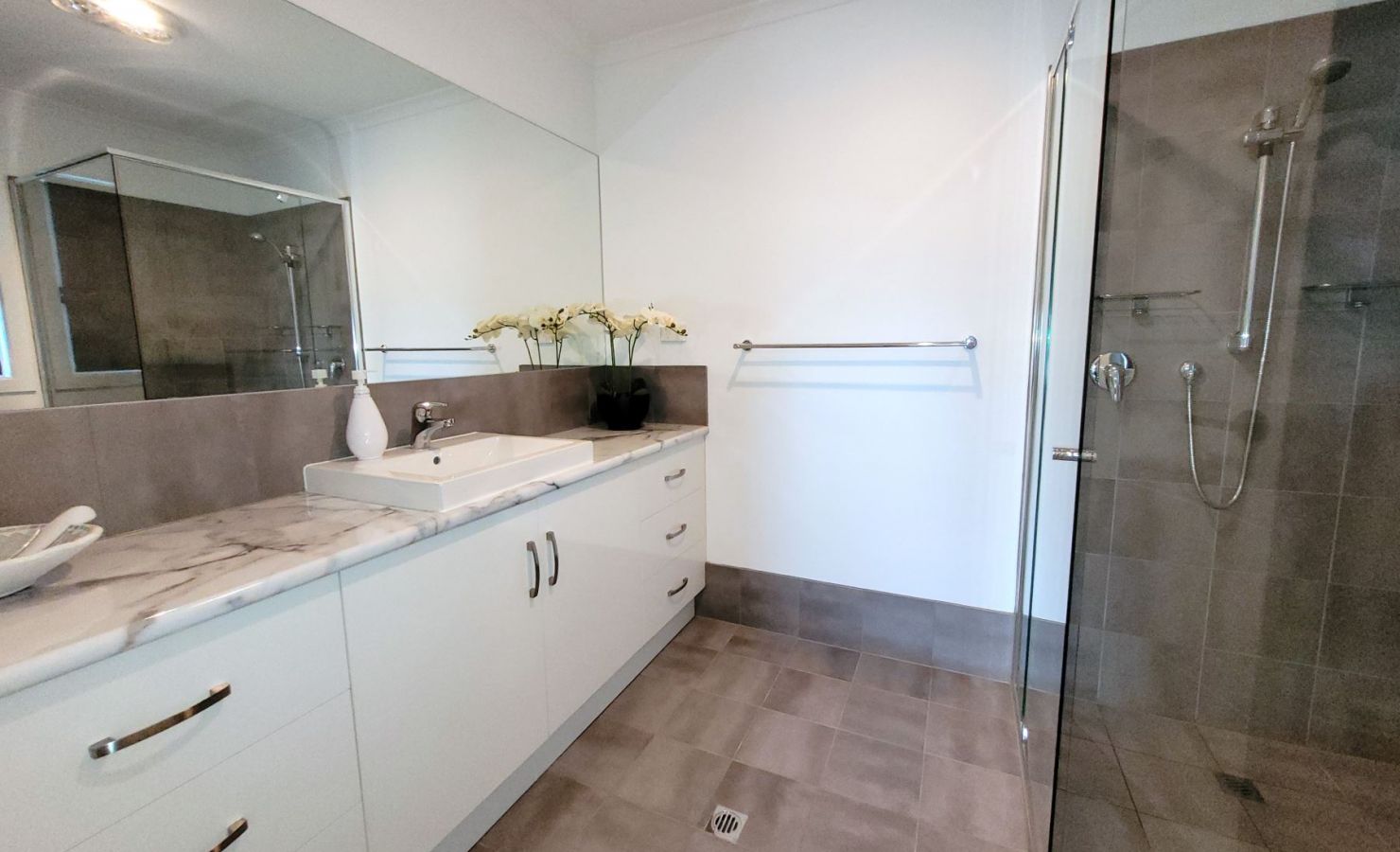 The master queen bedroom has an ensuite bathroom with a walk-in shower, vanity & toilet; and the main bathroom has a bath, walk-in shower & vanity, with a separate toilet.