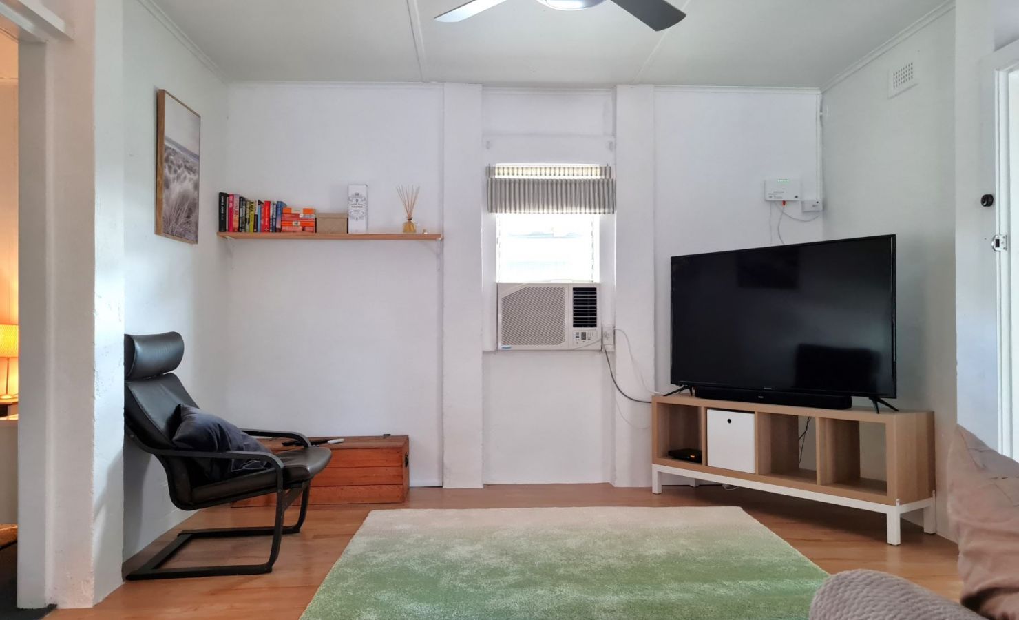 In the central lounge room is reverse cycle split-system air-conditioning and a ceiling fan, with a ceiling fan in the 3rd bedroom.
