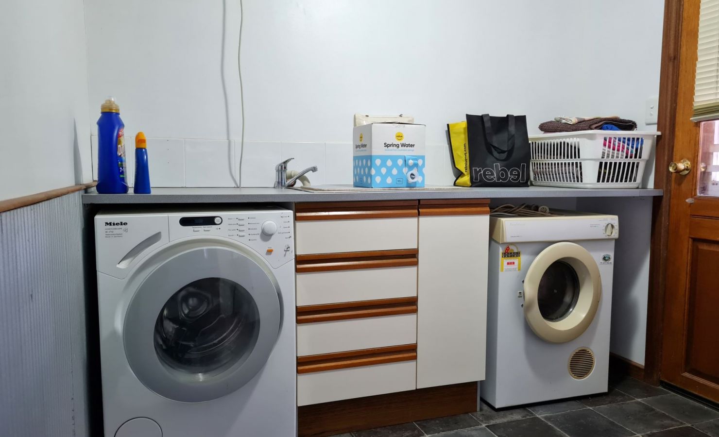 Kingfisher Cottage has a full laundry with a front load washing machine, clothes dryer and clothesline in the rear yard.