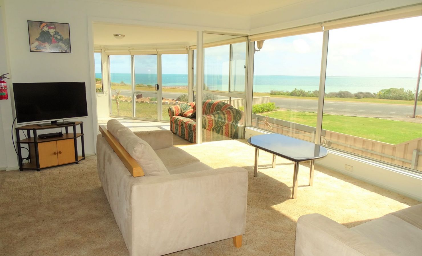 The lounge room overlooks the coastline with sea views of the beach and jetty and contains plenty of seating with a television and DVD player with some DVDs provided for guest’s use.