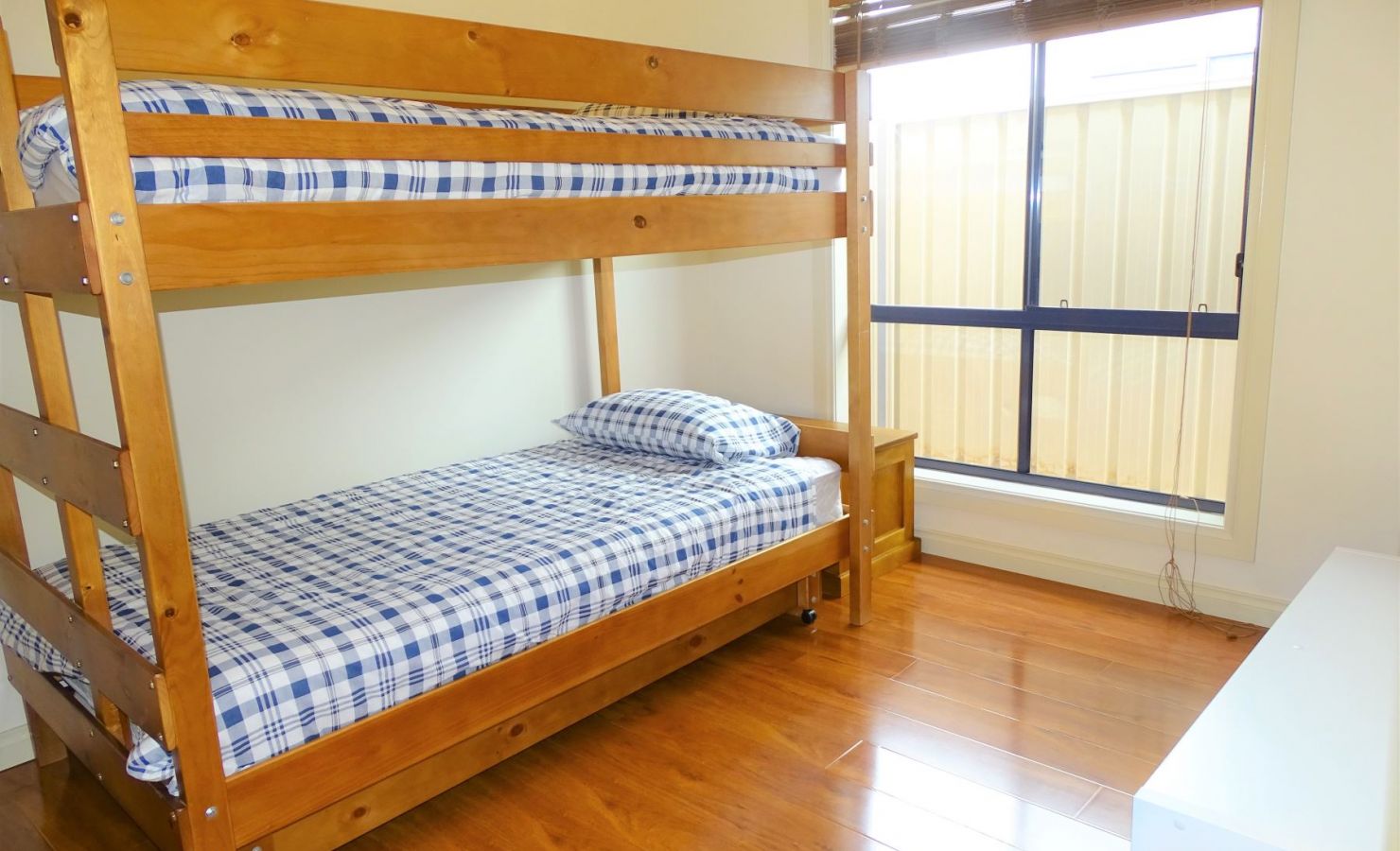 - 3 bedrooms – queen, queen, king single bunk & single trundle