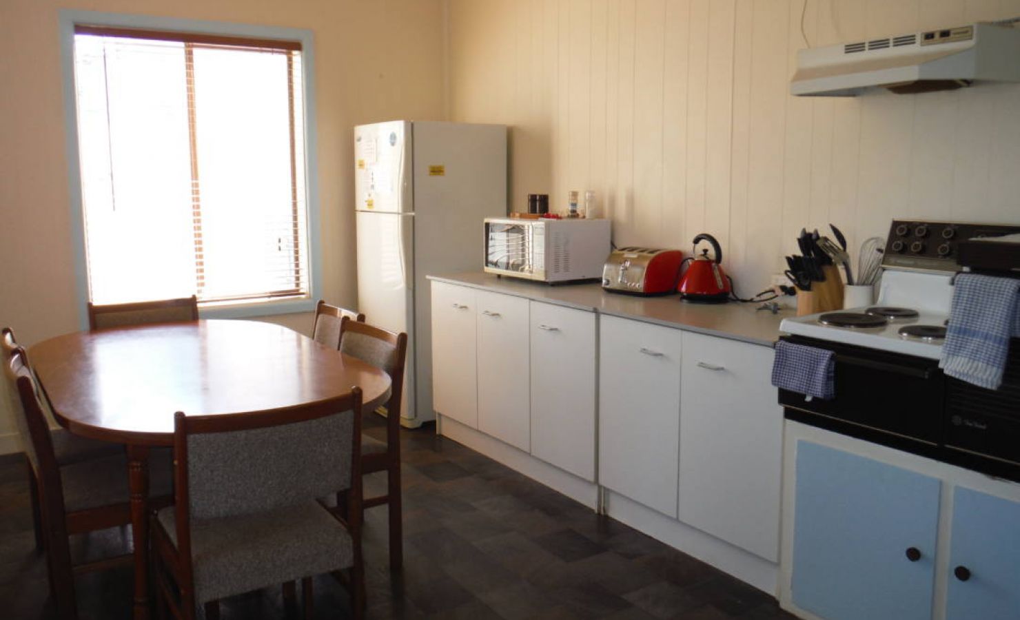 The Albatross holiday accommodation sleeps up to 9 guests and has 4 bedrooms. There are 2 queen beds, a trio bunk (double on the bottom, single on top), and 2 single beds. Quilts and pillows are supplied; guests just need to bring their own sheets, towels and tea-towels; Optional linen hire through the Country Getaways office.
