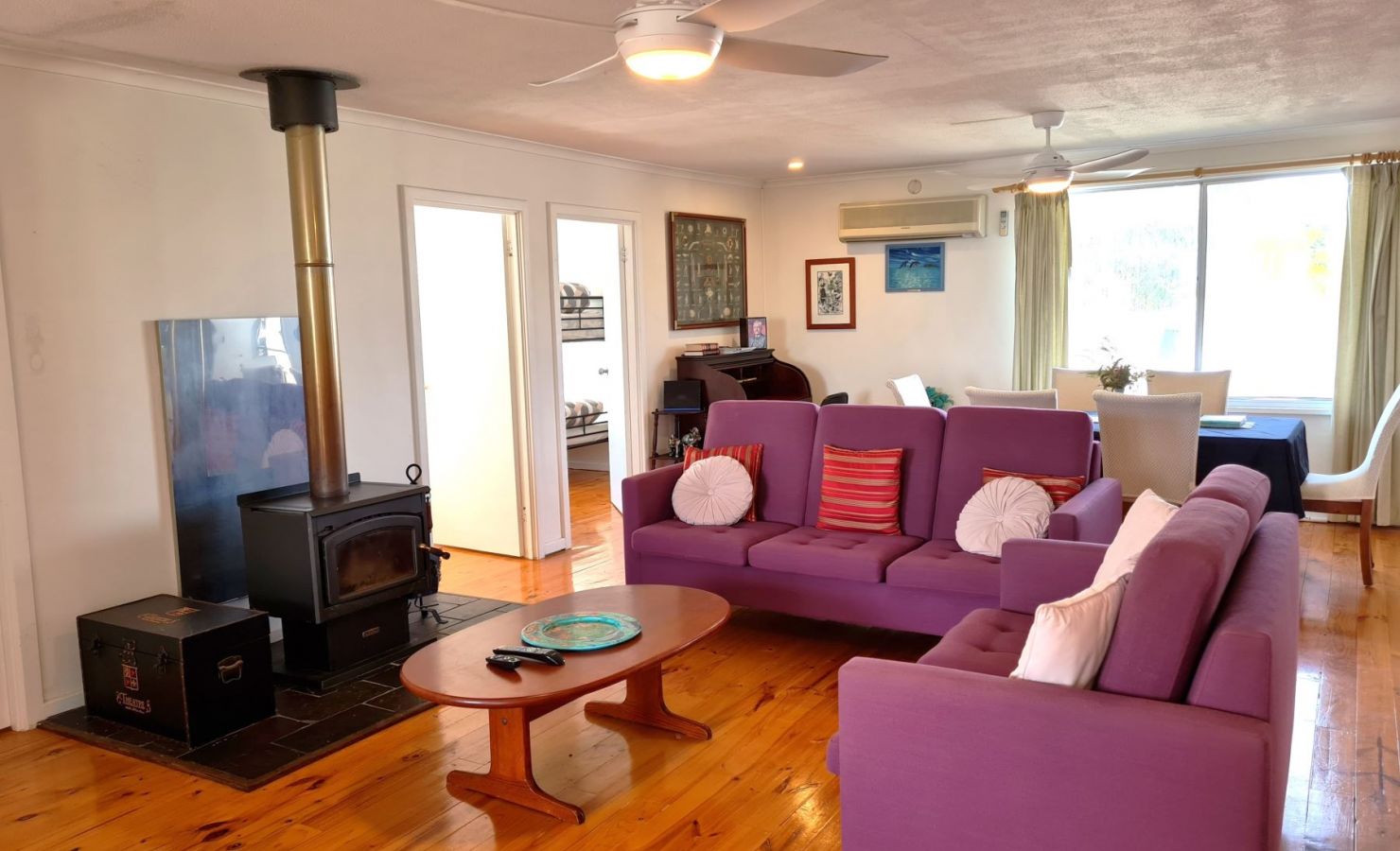 Dolphin View is an ideal accommodation choice throughout all seasons of the year, with reverse cycle split system air-conditioning and wood combustion heater in the living area. There are ceiling fans in all bedrooms, and in the lounge room and dining space, with portable heating also available.