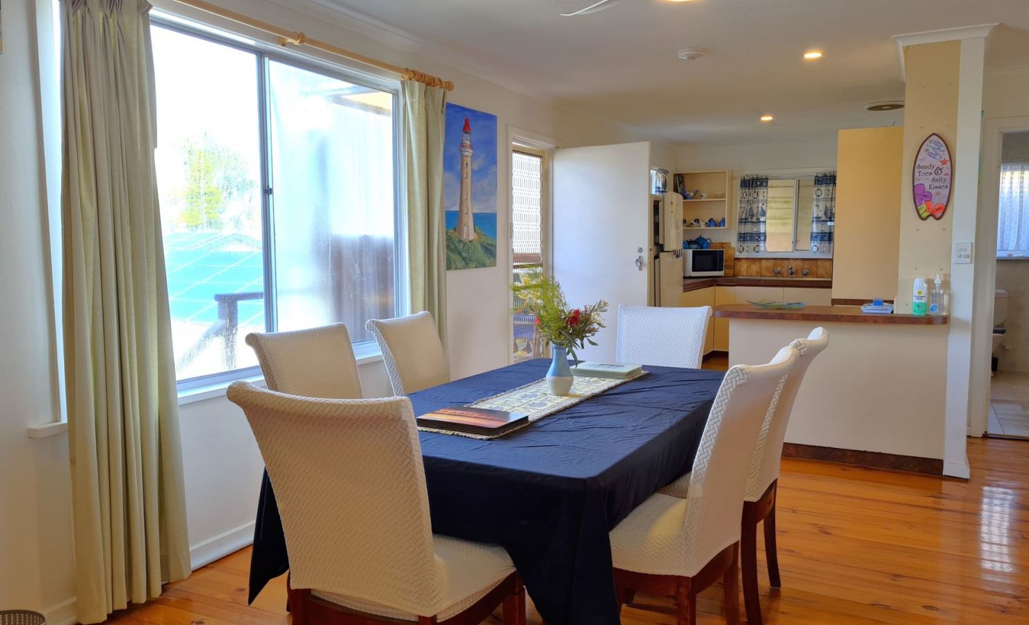 Dolphin View has 3 bedrooms – queen, 2 bunks (4 singles), 2 singles; sleeping up to 8 people (maximum 6 adults). Quilts and pillows are provided, but guests will need to bring their linen (sheets, pillowcases, towels, bathmats & tea-towels) with them for their stay, or linen can be hired.