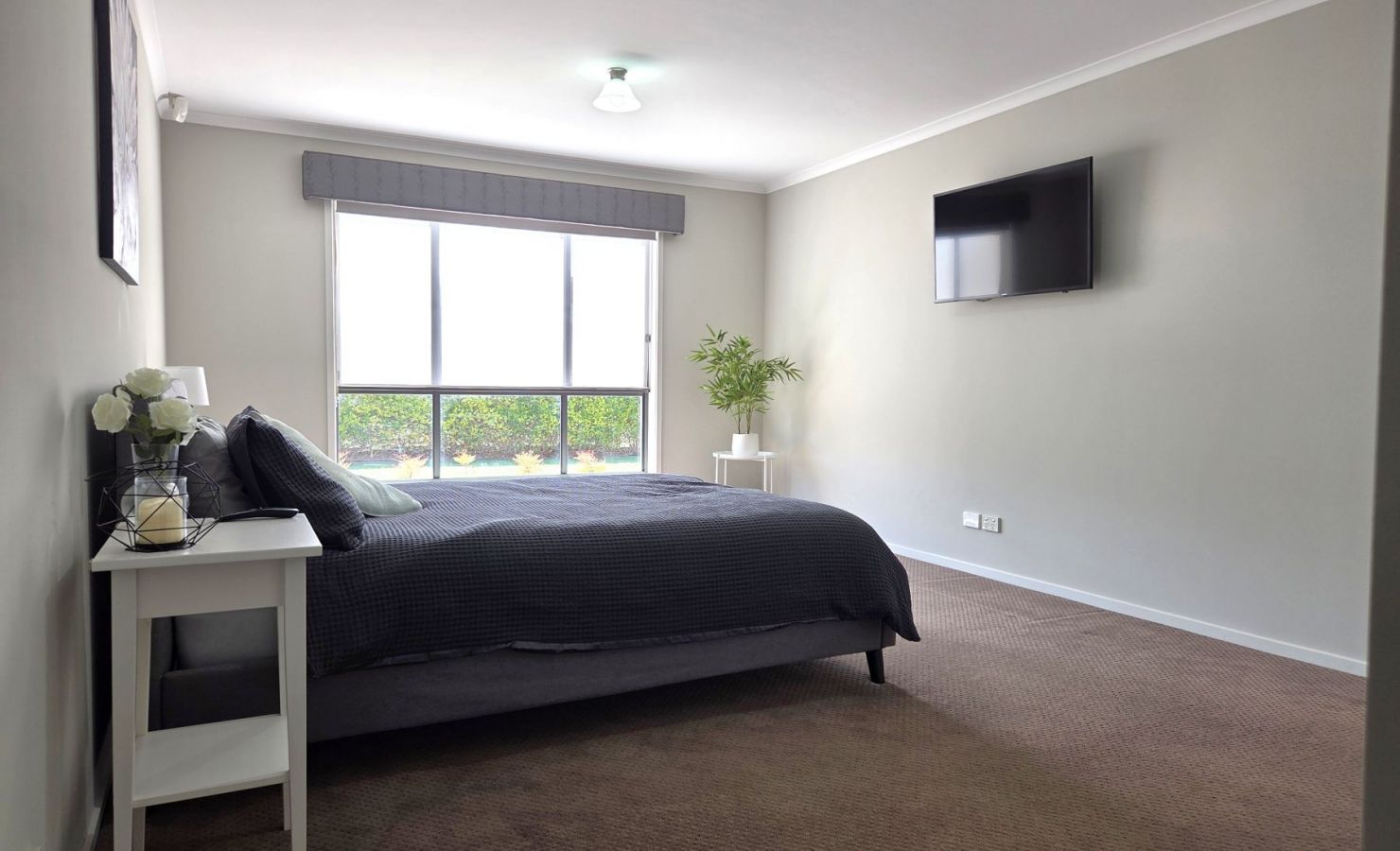 The master queen bedroom includes an ensuite bathroom with a walk-in shower, toilet and vanity, while the main bathroom features a bath, walk-in shower and vanity, with a separate toilet for convenience. A hairdryer is also supplied.