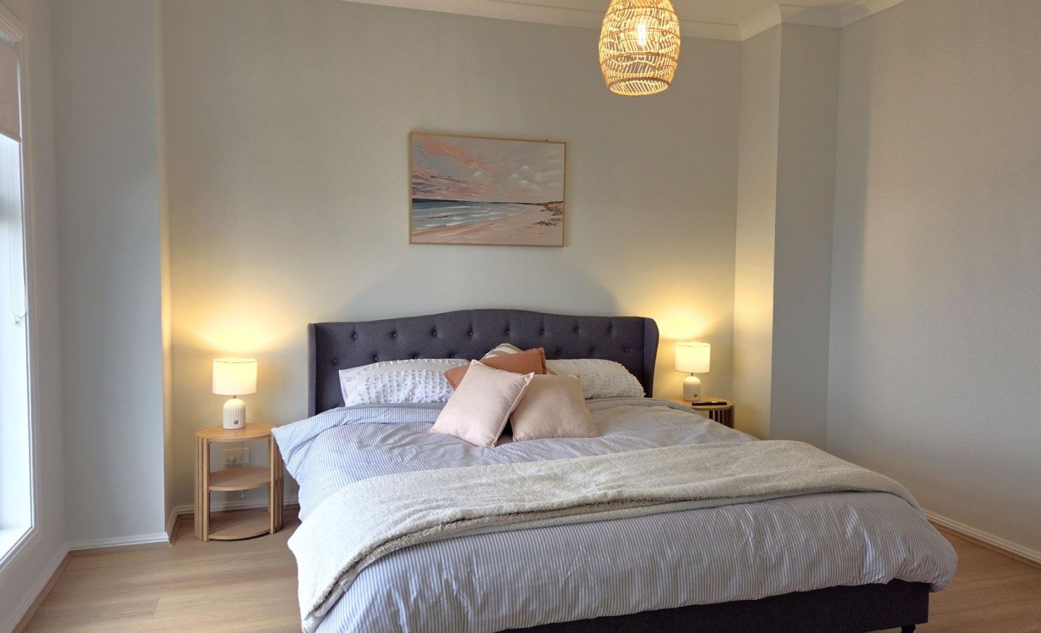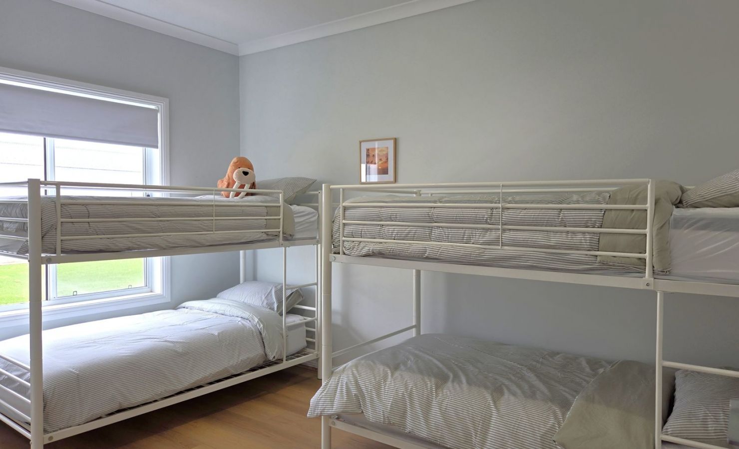 With 4 bedrooms, Palm Breeze accommodates up to 12 guests (maximum 8 adults, with top bunks suitable only for children). The master king bedroom is located upstairs, and the other 3 downstairs bedrooms comprise a queen room and 2 bunk rooms, each with 2 sets of single bunks (4 single beds in each bedroom). Quilts, blankets and pillows are provided, and guests can bring their own sheets, pillowcases, towels, bathmats and tea-towels, or choose the optional linen hire available through the Country Getaways office.