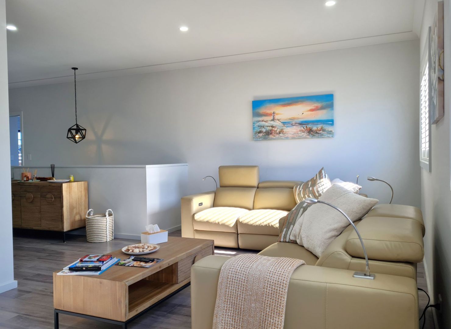 - Downstairs lounge room has large corner sofa with electric recliners and chaise