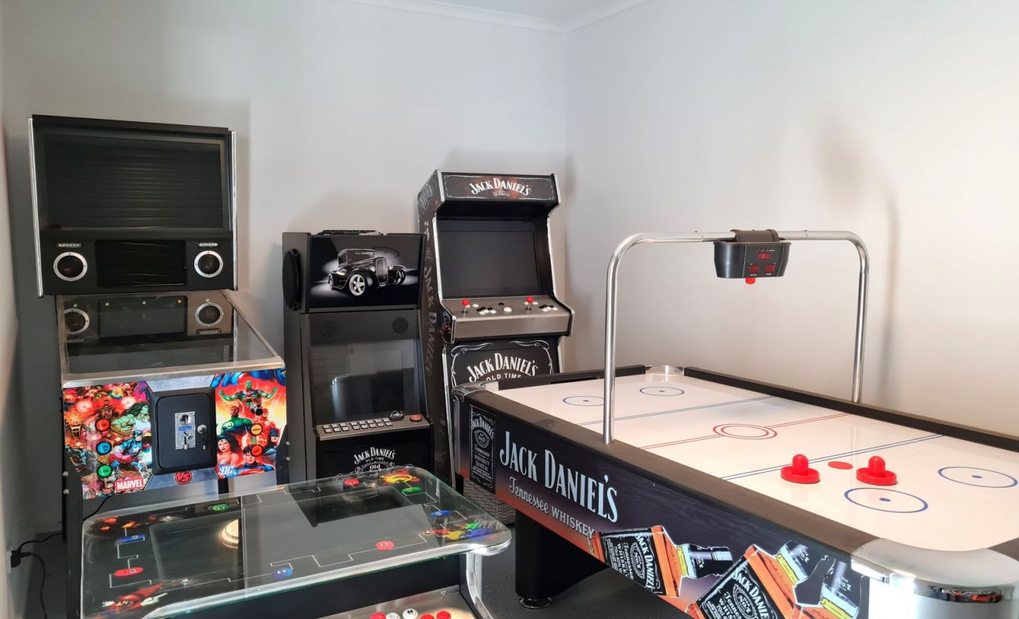 - Games room with a range of games including Pac-man tabletop arcade game, Marvel pinball, 2-player games, foosball table and air hockey table