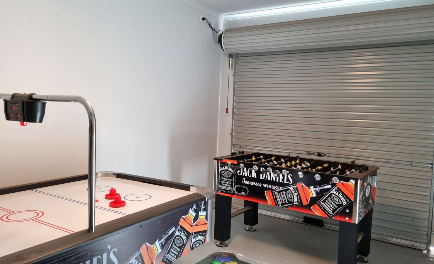 The games room on the ground floor has a range of gaming options including a Pac-man tabletop arcade game, Marvel pinball, foosball table, air hockey table and more for guests to enjoy.