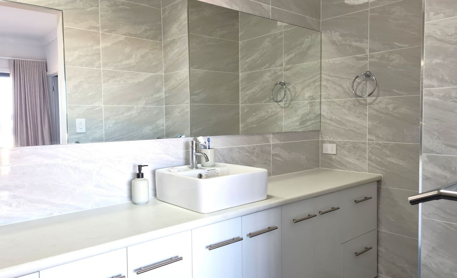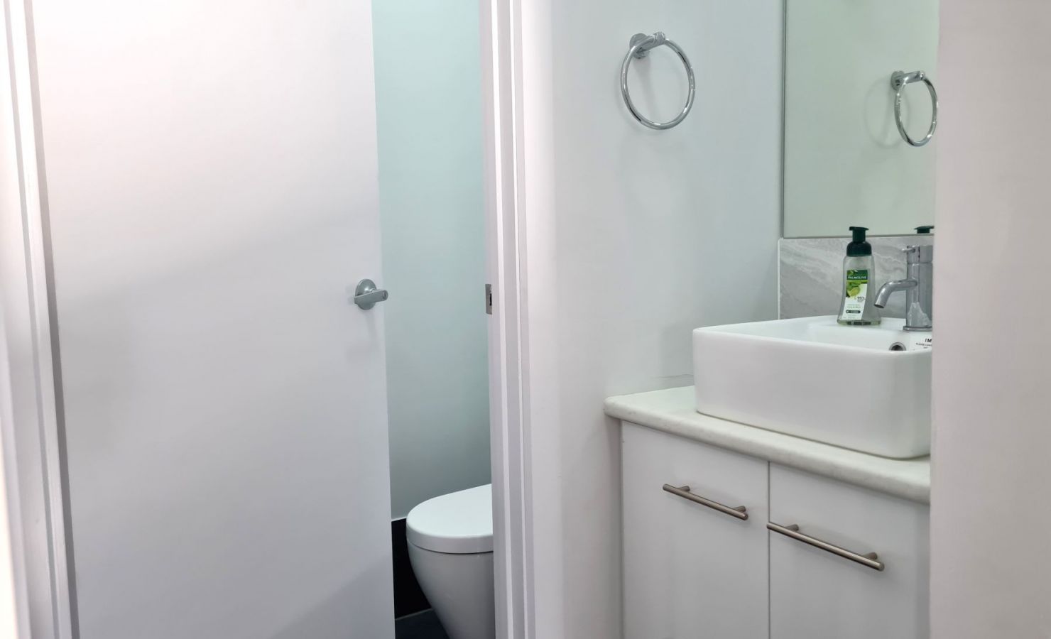 There are 2 bathrooms at Retreat on Timaru, including the upstairs ensuite with walk-in shower, vanity and toilet, plus a separate toilet on the upper level. The downstairs main bathroom has 3-way access with a bath and walk-in shower, separate toilet and separate vanity, making it ideal for groups and families. A hairdryer is also provided.