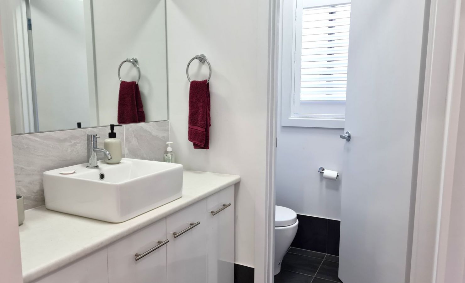 - Ensuite bathroom adjoining upstairs master bedroom, with walk-in shower, vanity and toilet