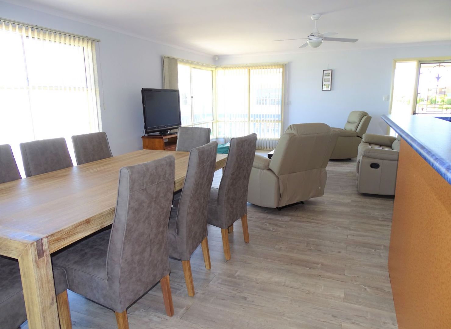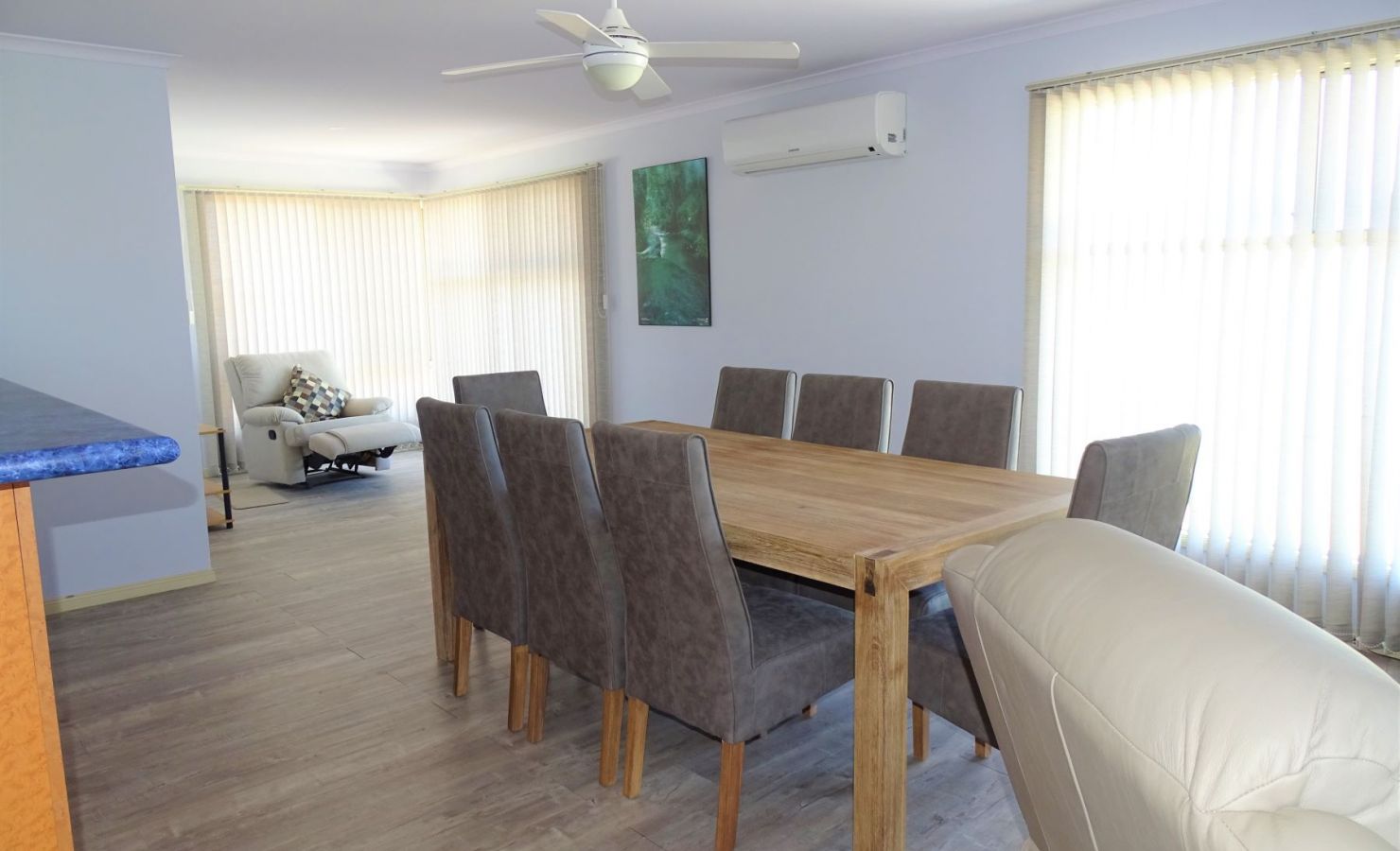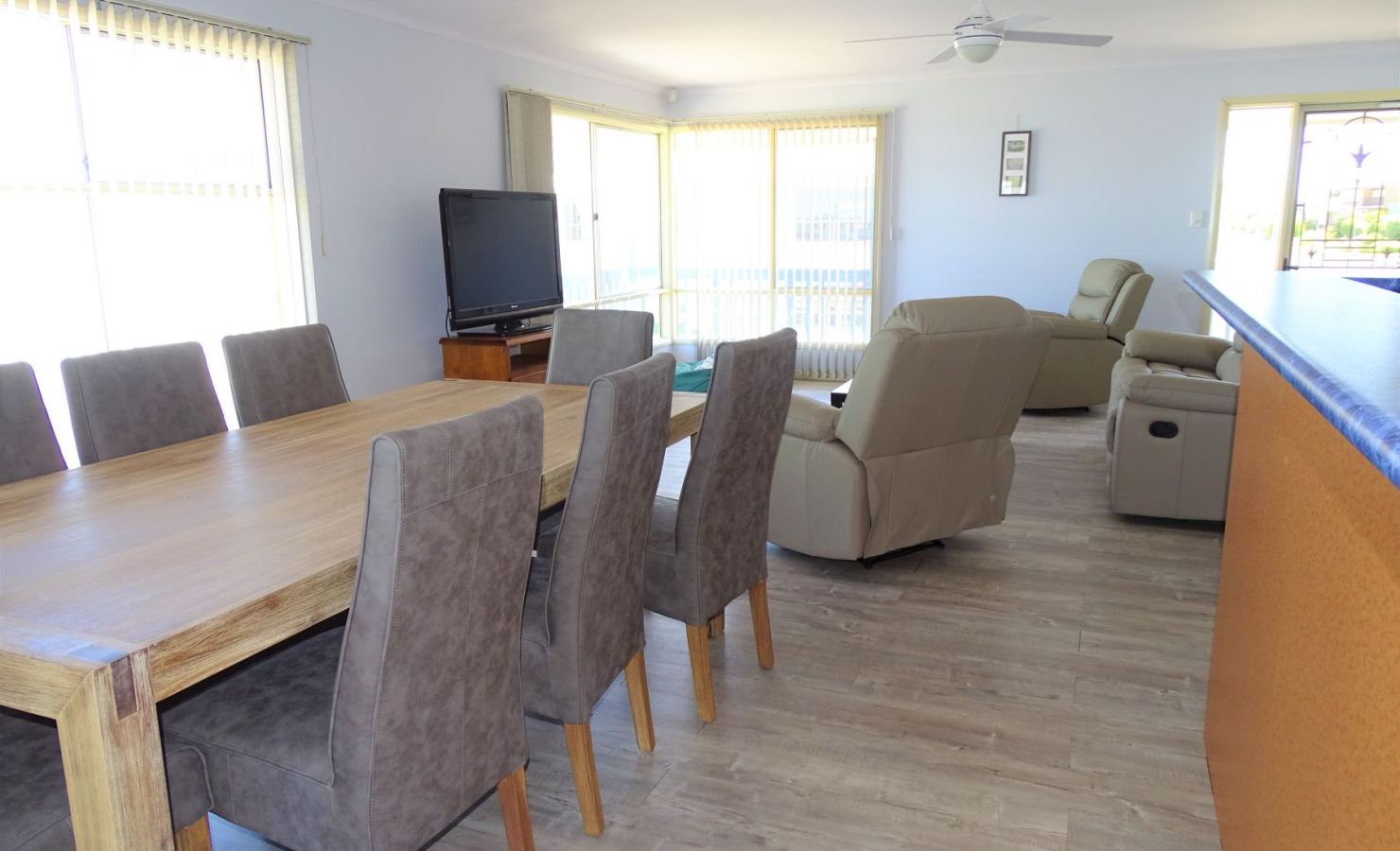 In the lounge is a large television with USB port, DVD player and comfortable sofa & recliners; with the dining room part of the spacious living area.
