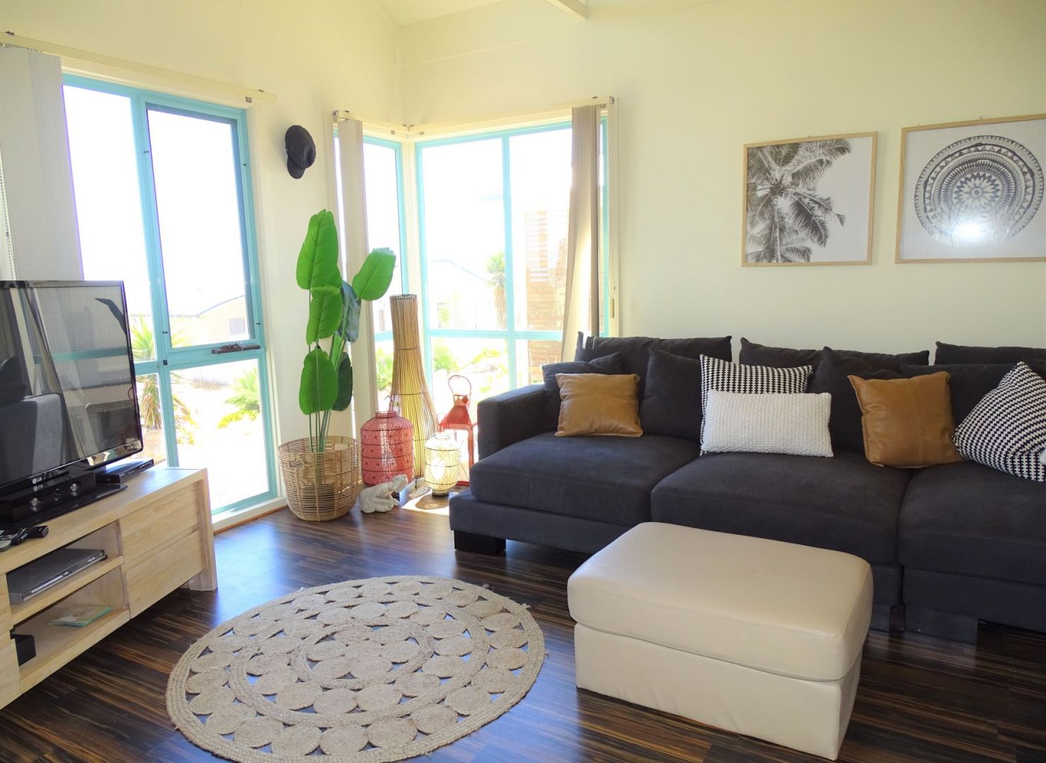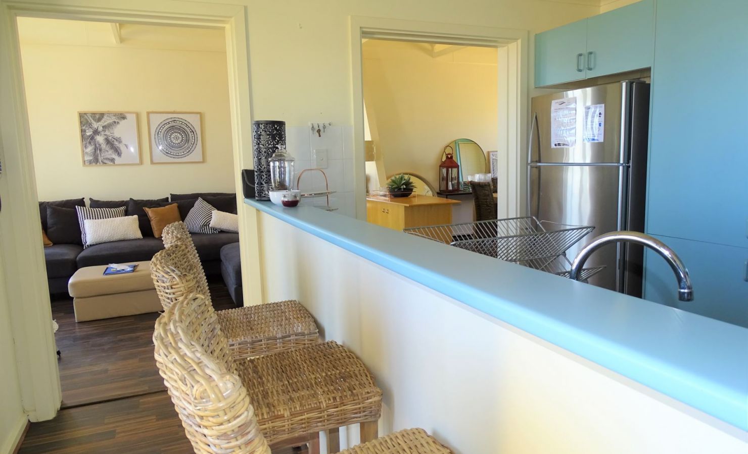 The lounge room has a large television with a USB port, DVD player, board games & radio; with a highchair provided for those travelling with younger children.