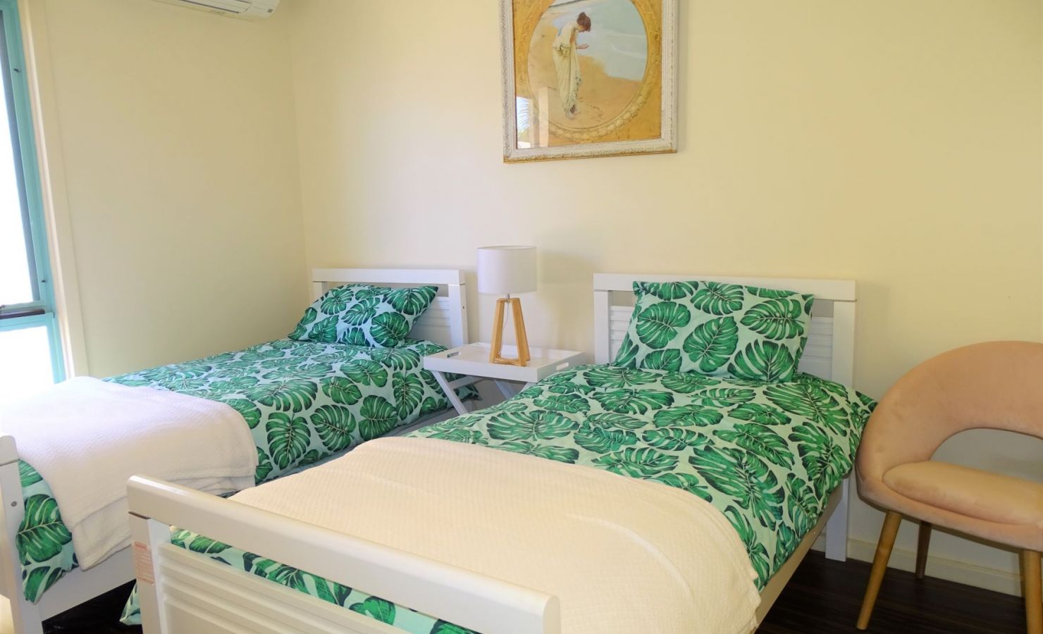 There are 3 bedrooms at Telly’s at Palm Cove – queen, queen, 2 singles – sleeping up to 6 people. Quilts, blankets and pillows are provided, but guests will need to bring their linen (sheets, pillowcases, towels & tea-towels) with them for their stay, or linen can be hired through the Country Getaways office. A portacot is supplied, and guests need to bring all bedding to use.