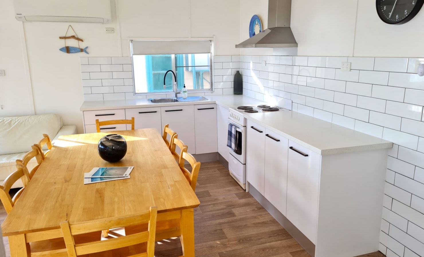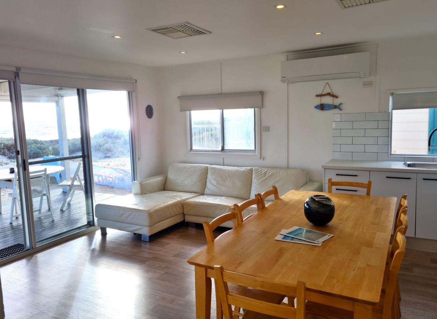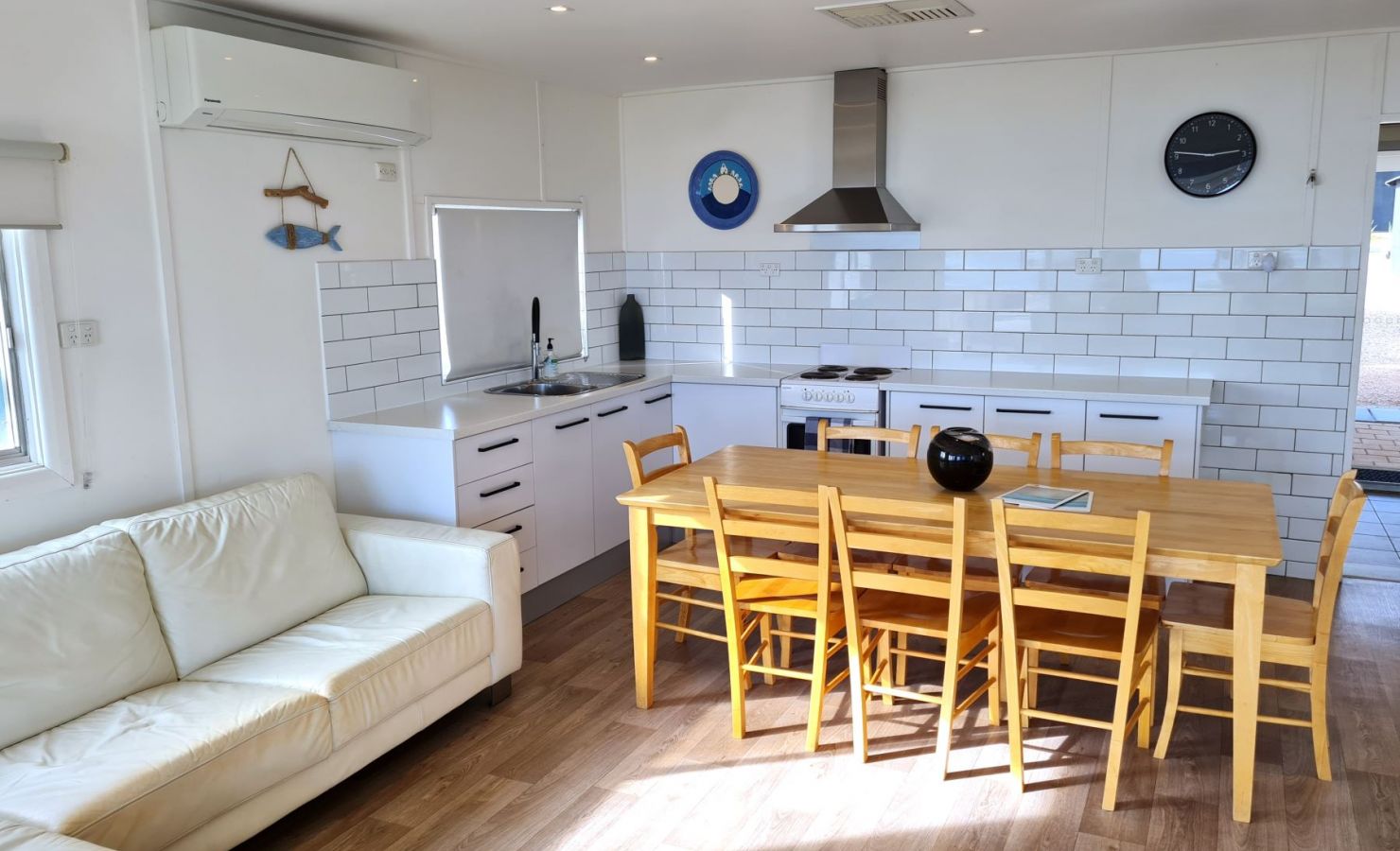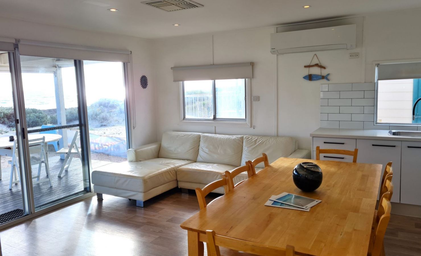 The open plan kitchen with good size fridge/freezer, dining and lounge is a functional easy care area overlooking the Wallaroo white sandy beach and has everything that you need in a holiday home including reverse cycle split system air conditioning and ducted evaporative air conditioning throughout for your comfort.